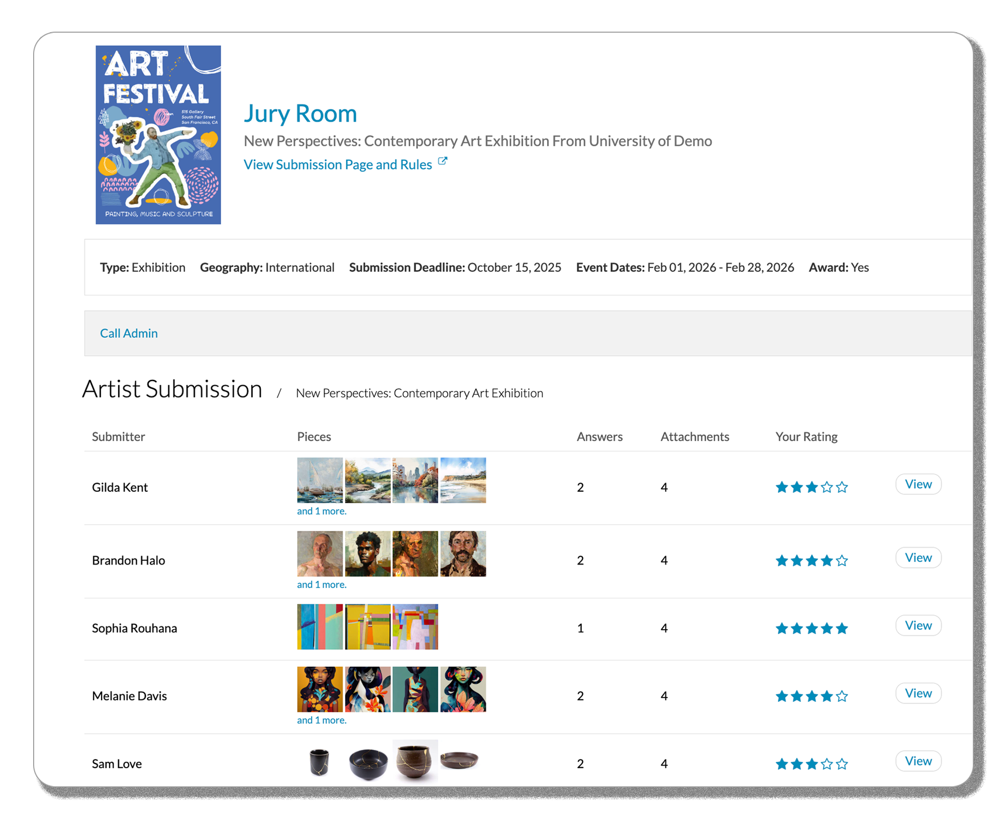 - Collect and organize submissions through an intuitive artist portal