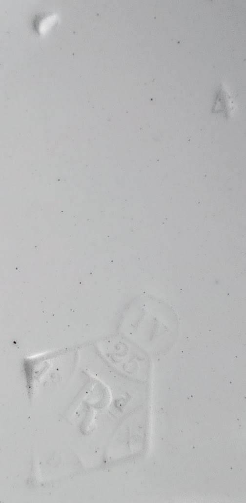 Plate, 9.125 inches diameter. Red transfer. Printed and impressed marks for Brown-Westhead, Moore & Co. The impressed registry diamond indicates the plate form was manufactured 25 September 1868. There is a long octagonal mark with the words "Copyright Depose," which refers to the French retailer, Grand Depot. Many of the "Canova" patterns were produced for that importer. This is pattern #5 of at least 18 different bird scenes in the "Canova" series, c. 1875-1880. It features a bird on the ground looking up to the left at another similar bird perched in a bunch of maidenhair fern.