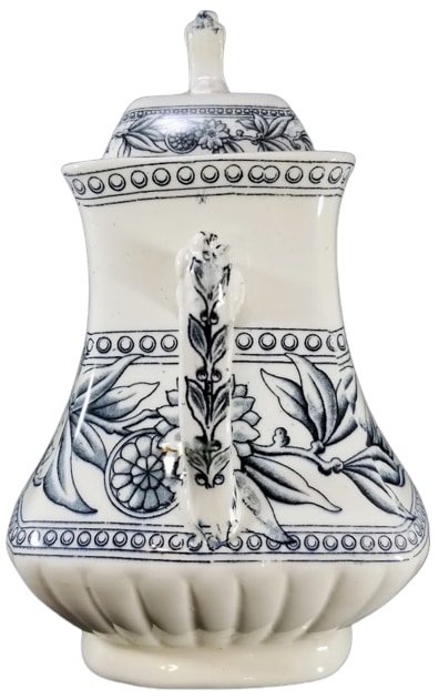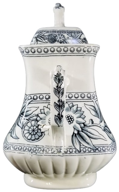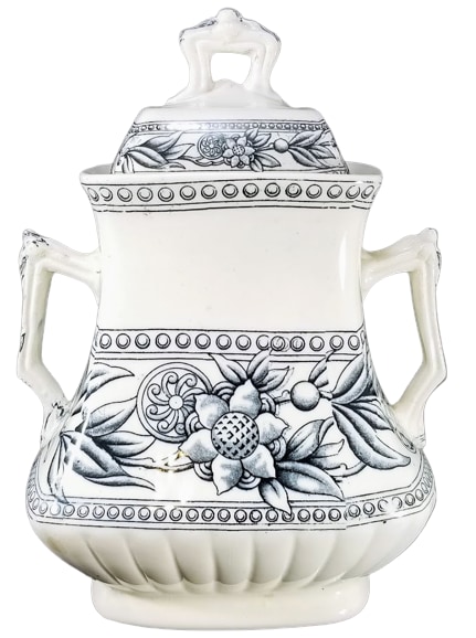 Sugar bowl, 8.75 inches tall. Black transfer. Printed maker's mark for the Old Hall Earthenware Co. Ltd.