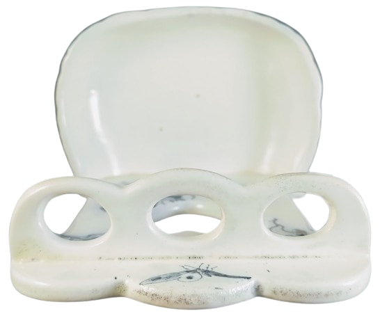 In 1891 Duncan Watson Bishop and John Stonier created a new company trade mark BISTO, using the first letters of their surnames. This name was incorporated into the backstamp of the period - the Wand of Caduceus. In 1906 they were using an advertising slogan in the trade press 'The sun never sets on Bisto wares.' In the 1920s a new range of designs using bright and lustrous colors was produced, known as 'Aztec Ware.' Children's nursery ware was also produced featuring nursery rhymes and stories. Other wares of the 20th century period included bathroom sets, vases, and sardine dishes. In 1933, the company was taken over by George Jones & Sons. They continued to use the wand mark and also the mark of a bishop until 1939.