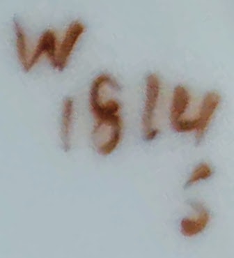 Plate, 8.25 inches diameter. Blue transfer with gilding. Printed maker's mark for the Worcester Royal Porcelain Co. The Rd. No. indicates the pattern was registered in 1885 and the 'Y' datemark under the printed mark indicates a production date of 1887. This simple pattern consists of a bunch of daisy flowerheads in the center with a chain of daisy flowerheads around the border. The rim is decorated with a simple gilded line.