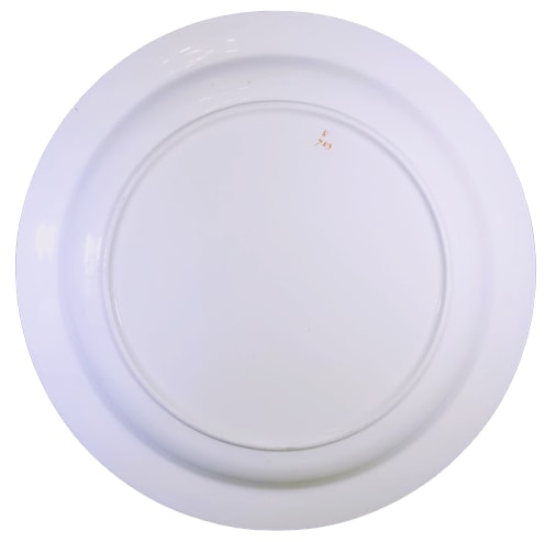 Plate, 9 inches diameter. Hand-painted with gilding. Impressed maker's mark for Bodley could refer to any of the Bodley firms between 1862 and 1892. Red painted pattern number 5/753. This cabinet plate features a red grouse in flight over a thatched fence with grasses and flowers. The border consists of a thin, scalloped, gilded band.