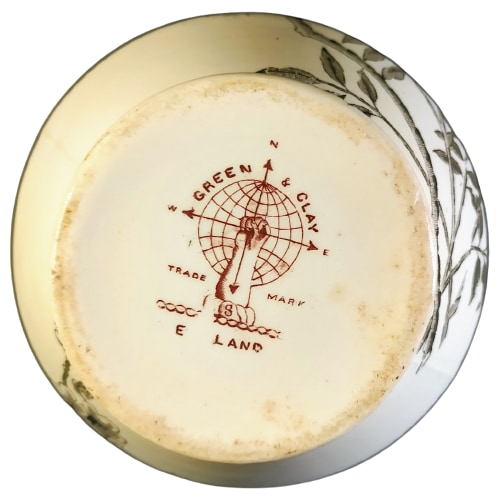Green & Clay was an earthenware and china manufacturer at the Stafford Street Works in Longton, Staffordshire, England. The partners were William Green and Alfred John Clay. Previously they had been in partnership with Charles Richard Clark as Green, Clark & Clay. Clark left the partnership in February 1883 and the business continued as Green & Clay. Around 1891 William Green left and Alfred J. Clay continued.