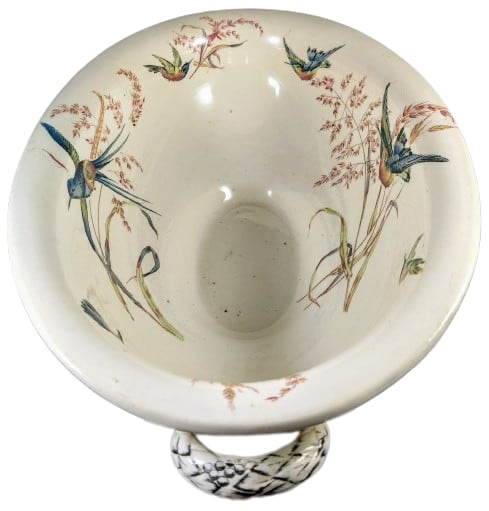 Following involvement in previous partnerships, from 1851 Jacob and Thomas Furnival became partners at J & T Furnival. As well as earthenware manufacturers, they were in business as Grinders of Potters’ Materials at Etruria Vale, in the borough of Hanley. In 1859 Jacob Furnival, Thomas Furnival, and Francis Joseph Emery applied for a patent for “Improvements in apparatus for supporting articles of china and earthenware in kilns and ovens.” In May 1864 the partnership between Jacob and Thomas Furnival was dissolved and the business was continued by Thomas Furnival. Around 1871, Thomas Furnival the younger joined the business which became Thomas Furnival and Son. In 1876, another son, Samuel Bourne Furnival joined the business, which became Thomas Furnival and Sons. Around 1883 the company found itself in financial difficulty with liabilities of £60,000 (around £5 million in 2020 terms). In 1884 there was a notice of “Liquidation by Agreement” which allowed the company to trade out of its difficulties. Thomas Furnival Sr. retired in 1890 and the business was continued by his sons Thomas, Samuel, and Arthur. The style of the business became Furnivals.