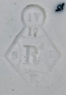 Soup plate, 9.5 inches diameter (24.13cm). Blue transfer. Printed and impressed maker's marks for Brown-Westhead, Moore & Co. The printed diamond registry dates the registration of this pattern to 28 September 1882. The impressed diamond registry dates the registration of this form to 17 May 1881. This elegant sheet pattern features a base of octagon shapes filled with sunbursts and separated by diamonds filled with dotted circles. Groups of prunus blossoms are laid above, as if floating on water.