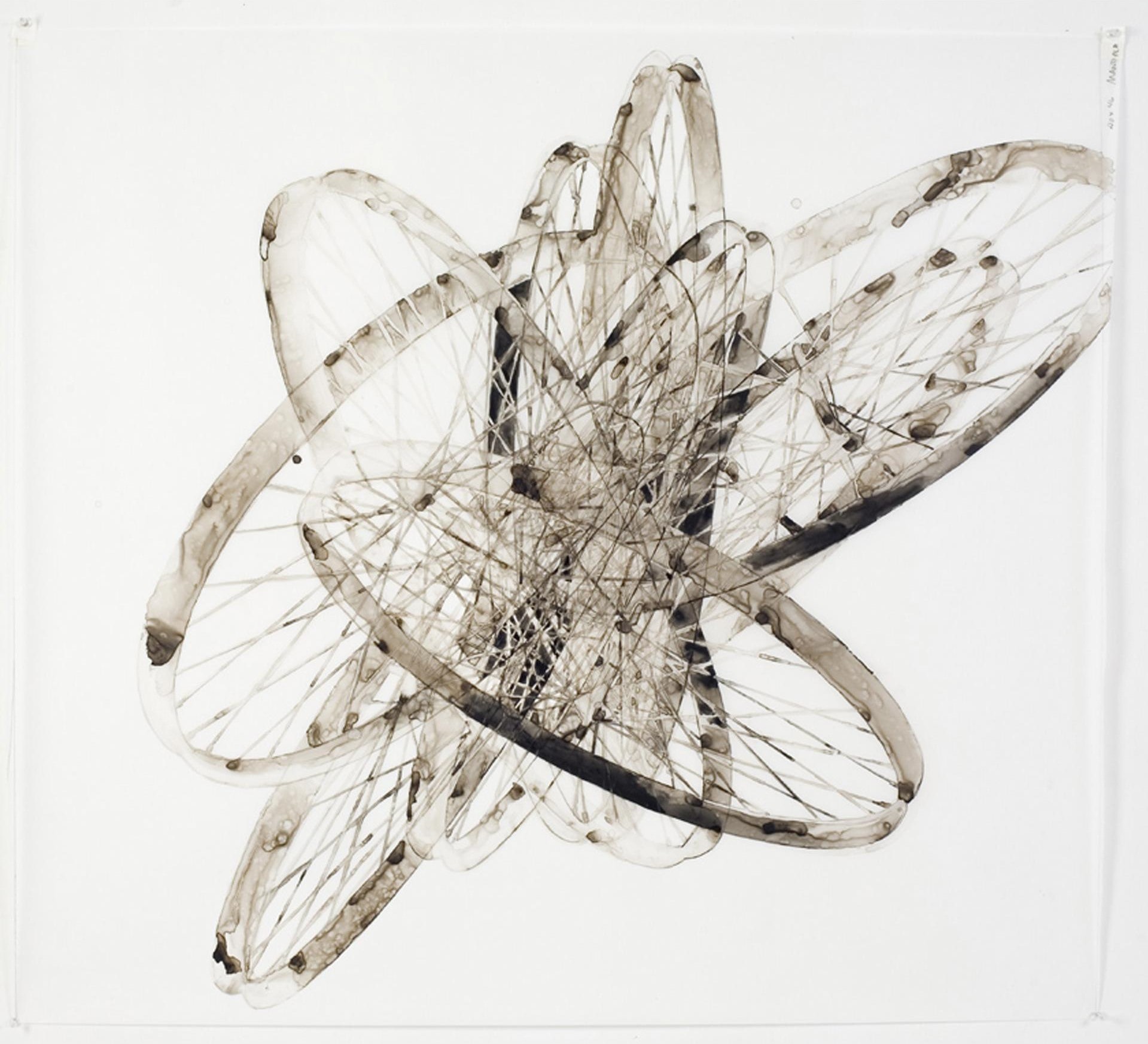 Artist’s Statement: Working mainly with the rim of a bicycle wheel, I cast shadows and project images in an artificially lit room. These images are the perception of a relationship to likeness, a sign whose intrinsic sensuous qualities remind us of something other than the object itself. The work is about visual immersion, and I attempt to create both a presence and an absence within my undulating patterns.