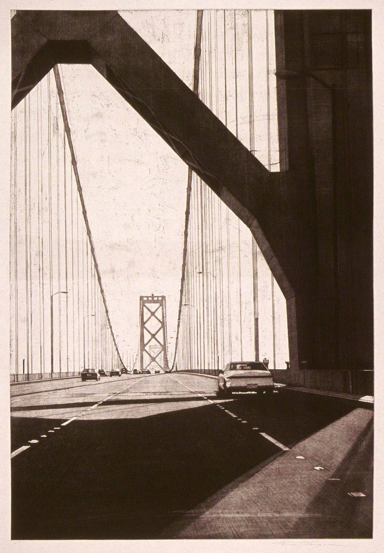 Artist’s Statement: Driving on the Bay Bridge provides the everyday views of the San Francisco Bay. When the new Bay Bridge was being constructed, the big open spaces between the support structures were obstructed. I miss the welcoming and spacious views but I know that nothing is permanent and everything is constantly changing: light, cityscape, and myself.