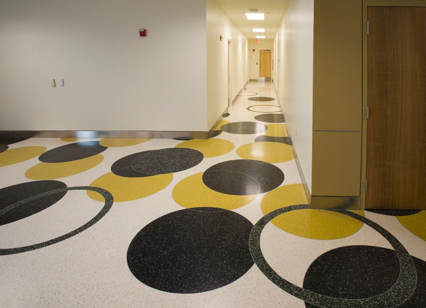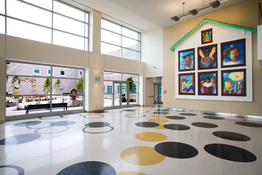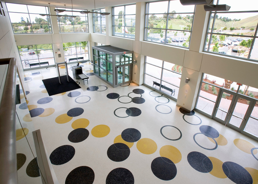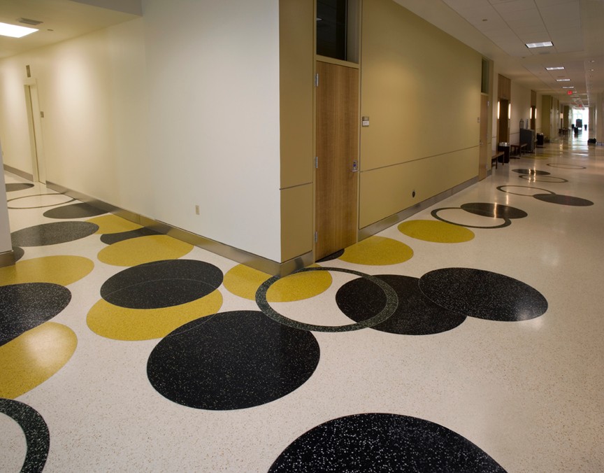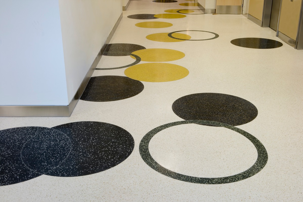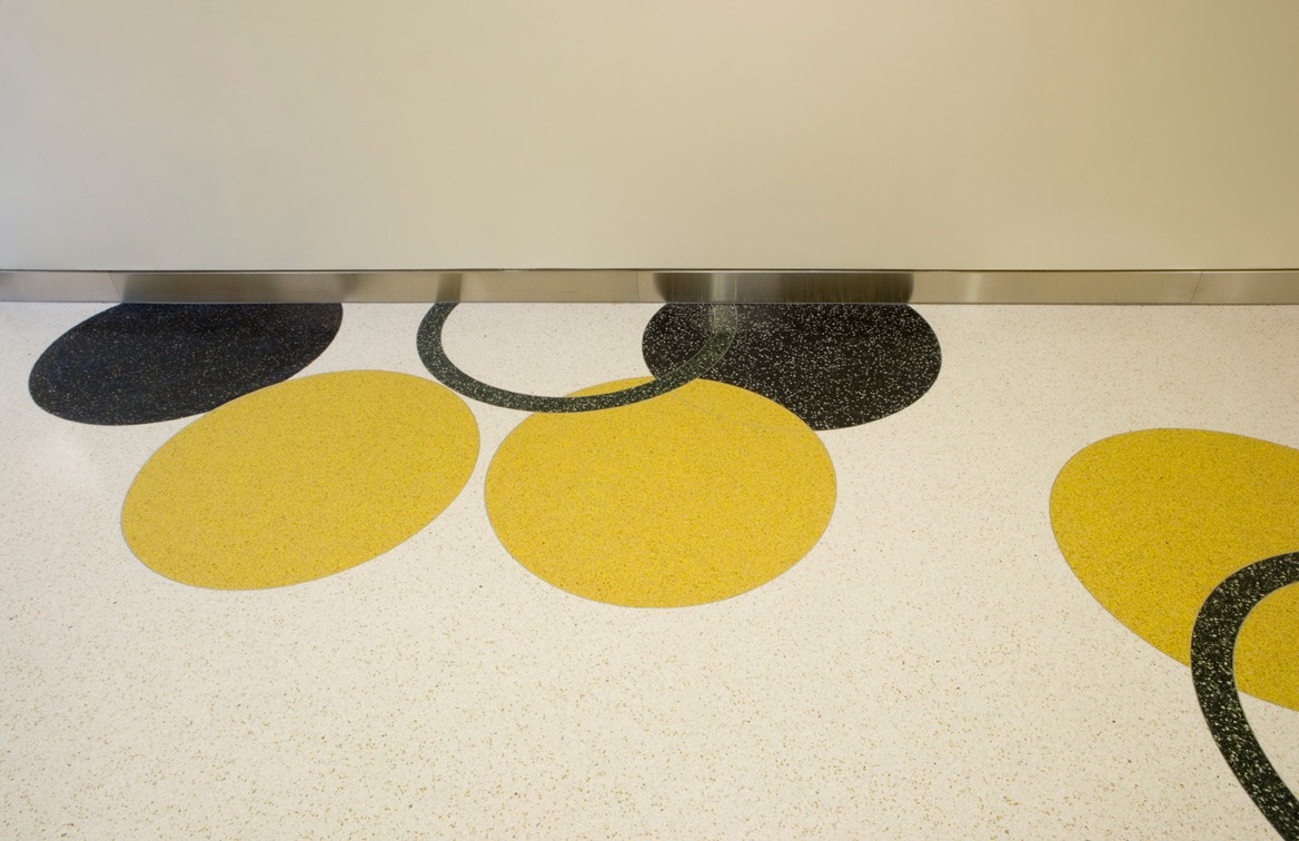 Each of the black circles on the lobby floor represents a word taken from Rainer Marie Rilke’s The Notebook of Malte Laurids Brigge. Published in 1910, it was