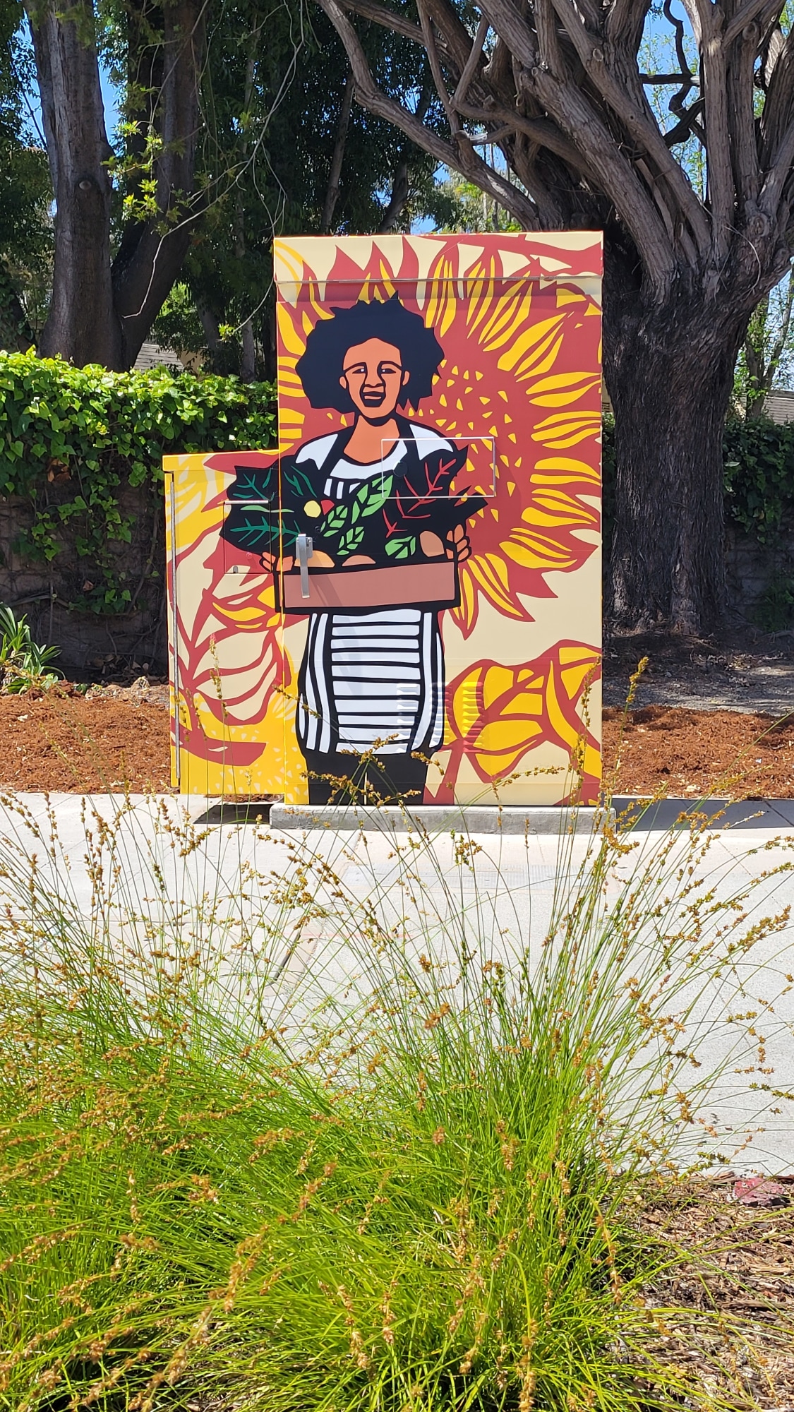 Art Banners & Utility Box Wraps: The street light pole banners and the utility box wraps feature a series of designs depicting activities that many people in Ashland enjoy and value. The designs were developed with feedback from community members serving on the Artist Selection Committee. The Arts Commission partnered with the Alameda County Economic & Civic Development Department to fabricate and install the banners as part of the ECD’s Banner Program in unincorporated Alameda County. The Arts Commission partnered with the Alameda County Public Works Agency to fabricate and install the utility box wraps as part of the Utility Box Art Program in unincorporated Alameda County. The art banners and utility box wraps are temporary aspects of the project.