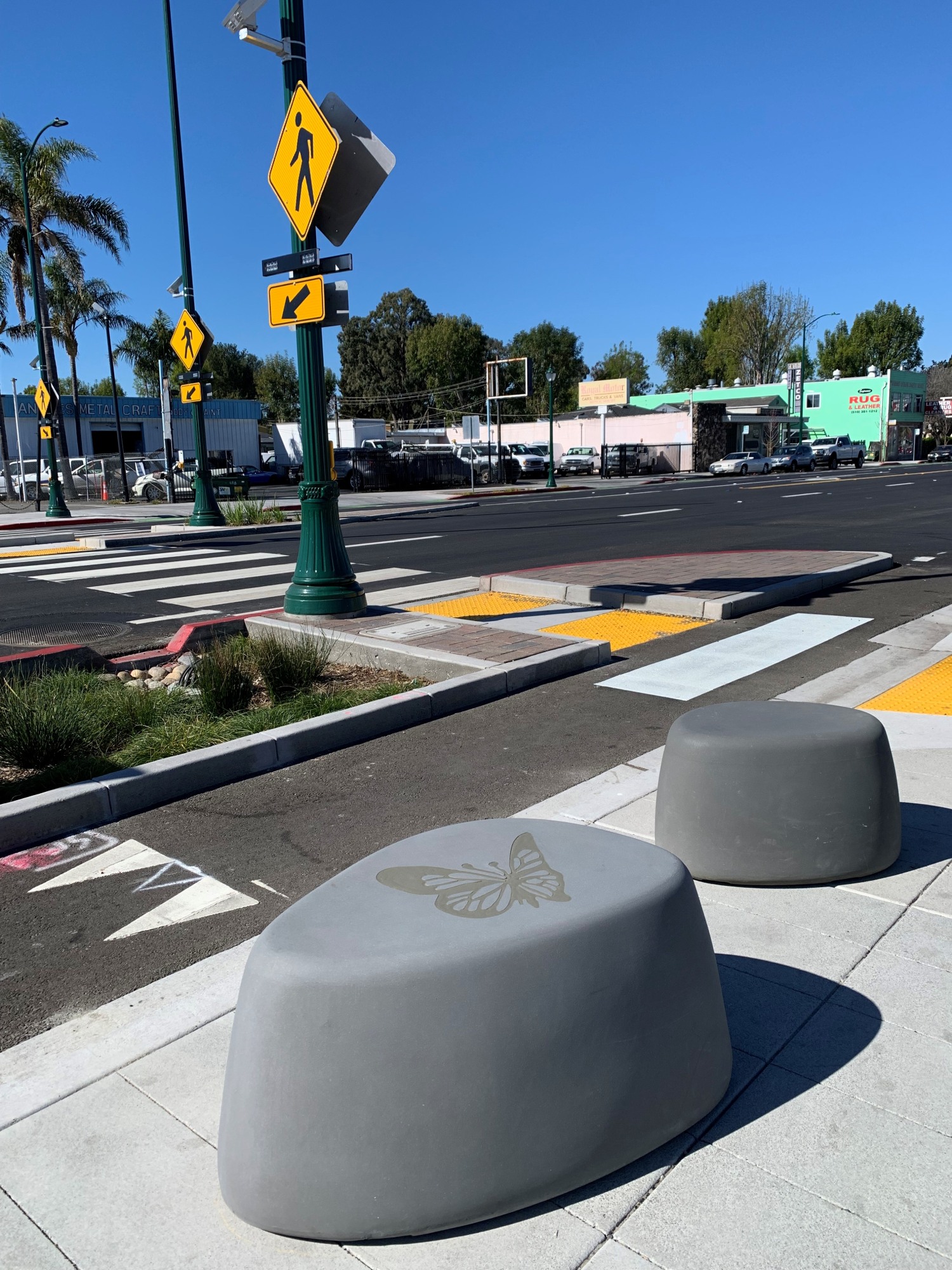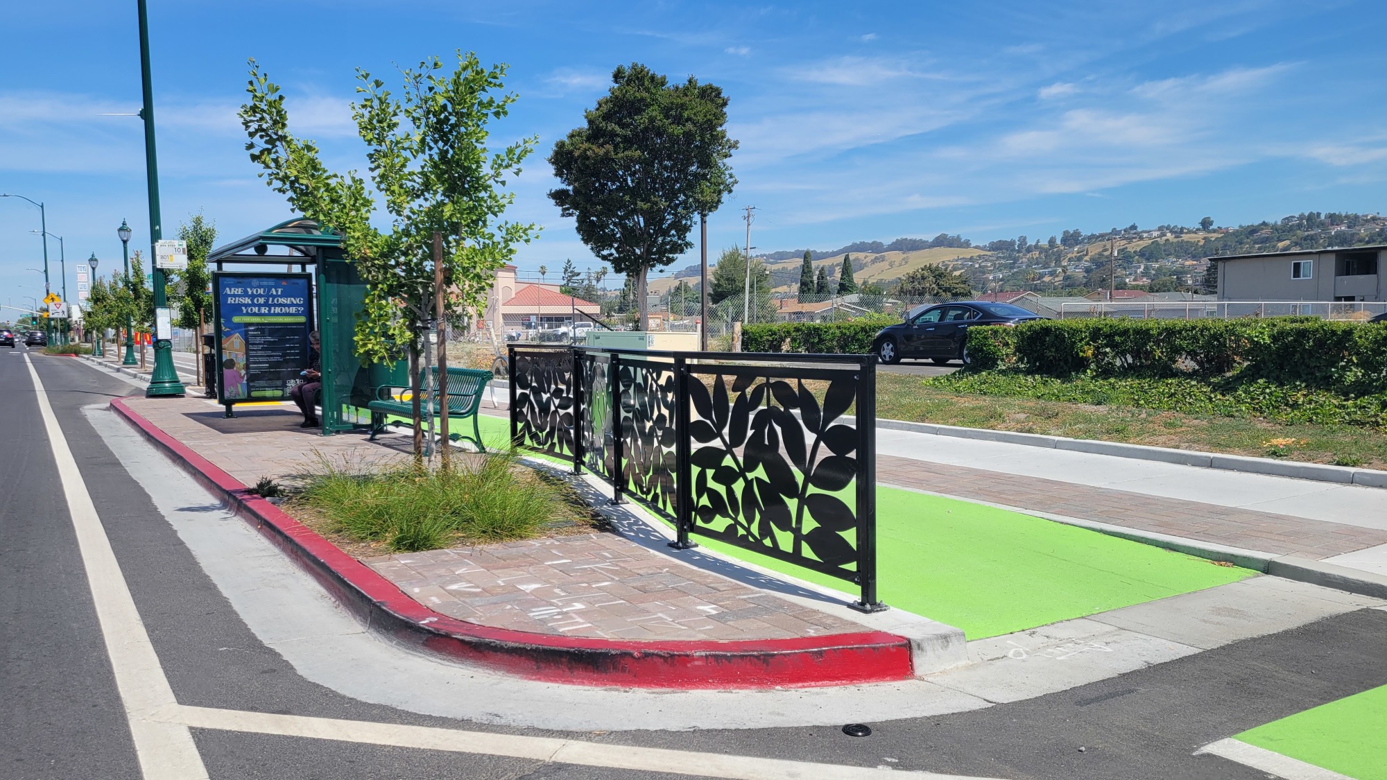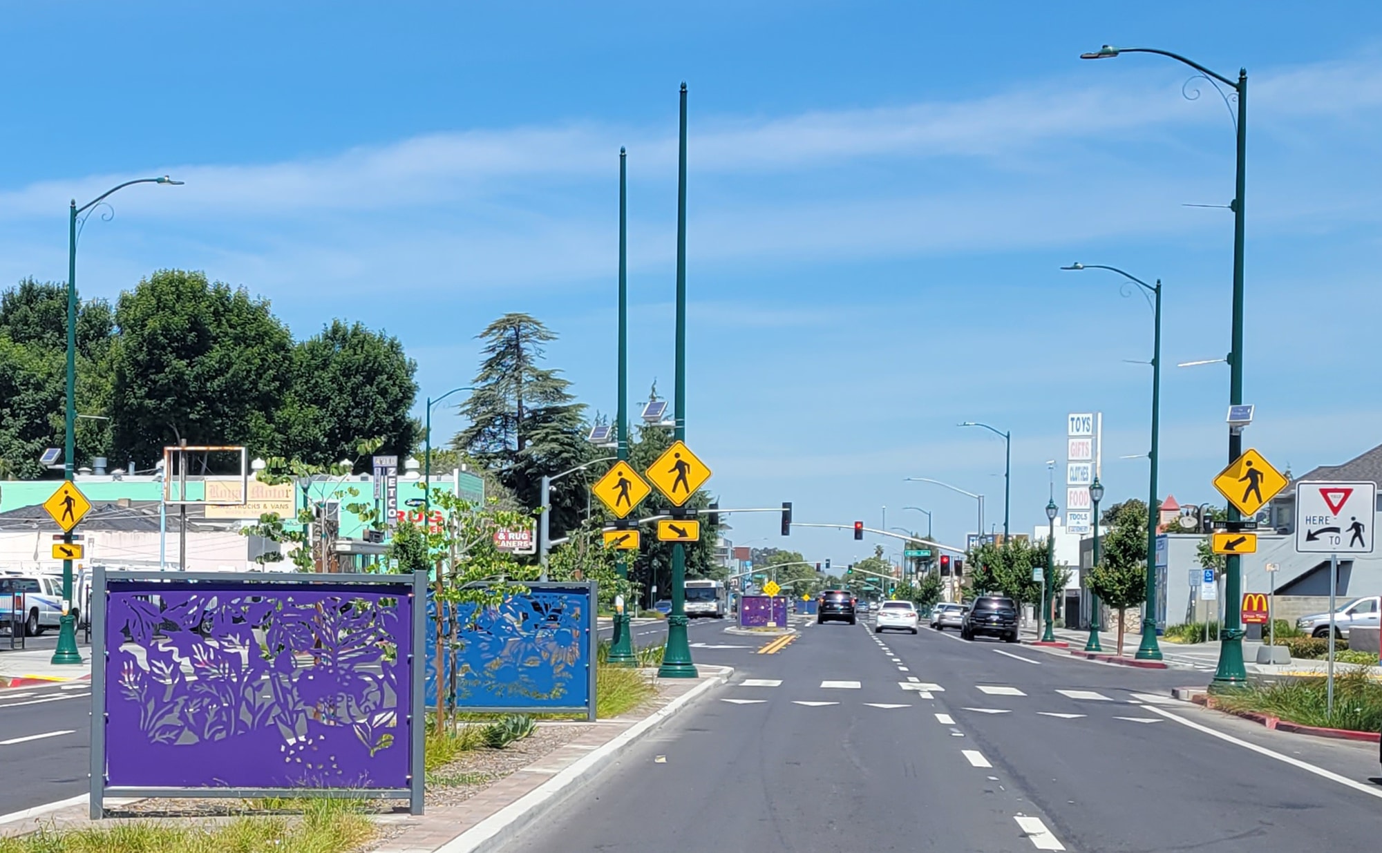 This artwork was created as part of the East 14th Street Corridor Improvement Project. The Corridor Improvement Project extends from 162nd Avenue to Interstate 238 in the Ashland community in unincorporated Alameda County. Motorists, pedestrians, bicyclists, transit riders, and residents in the Ashland community will enjoy a revitalized, safe, and accessible commercial corridor. Artist Miriam Klein Stahl was selected through an open, competitive process by a Selection Committee of community members who live or work in Ashland plus one local artist.