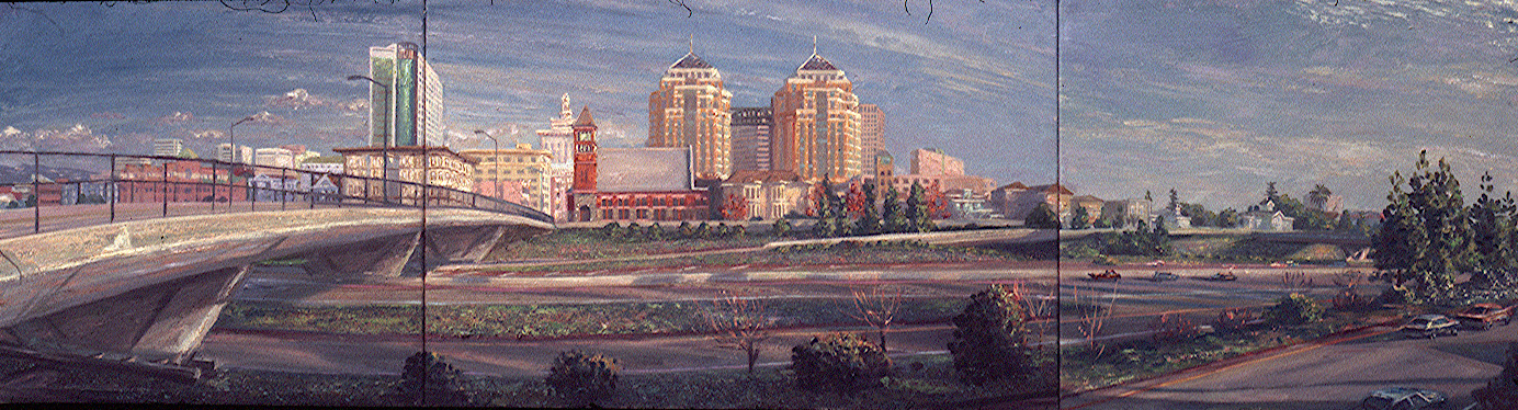 Artist's Statement: I have come to realize that Oakland is a dynamic organism constantly changing. Masonry, concrete, glass and steel, as solid as they all seem, rise and are demolished. Some like the First Unitarian Church at the end of this pedestrian bridge, are lovingly refurbished maintaining the architectural memory of the city.