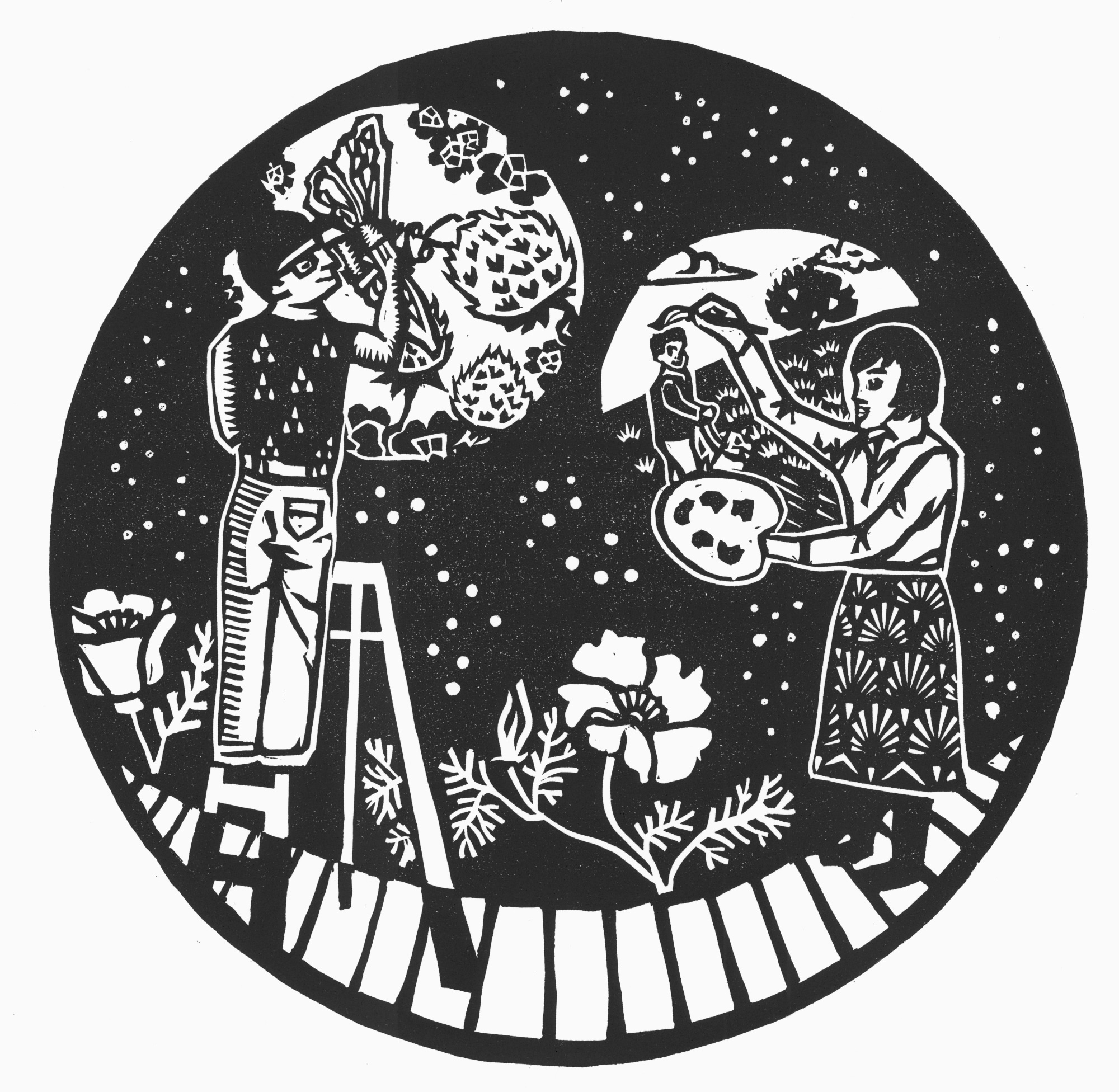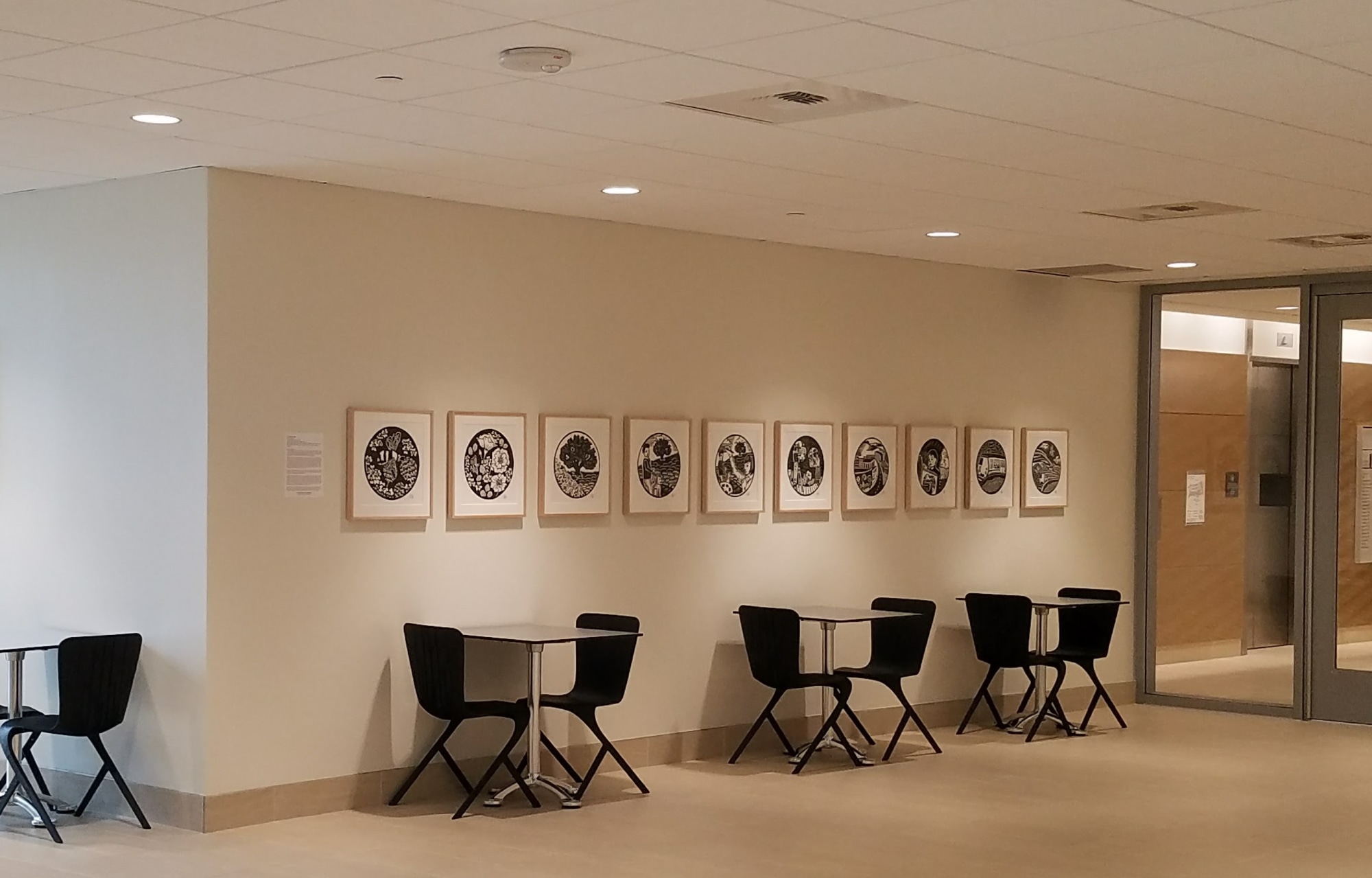 Wakida carved the images in linoleum by hand and printed the images onto paper with an etching press. The linoleum block prints were scanned and the digital files were used by a bronze fabricator to cast bronze plaques. Four sets of bronze plaques are located at the East County Hall of Justice at the main exterior entry, the courtyard, and the exterior walkways.