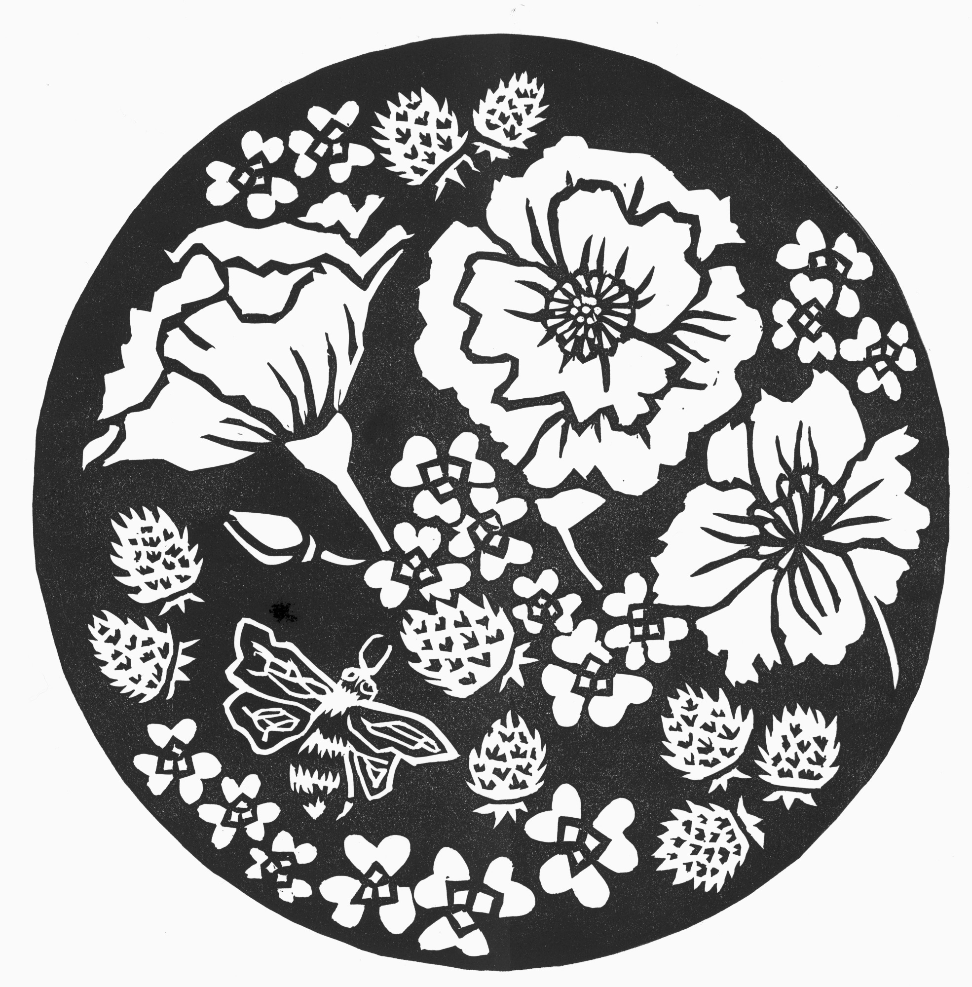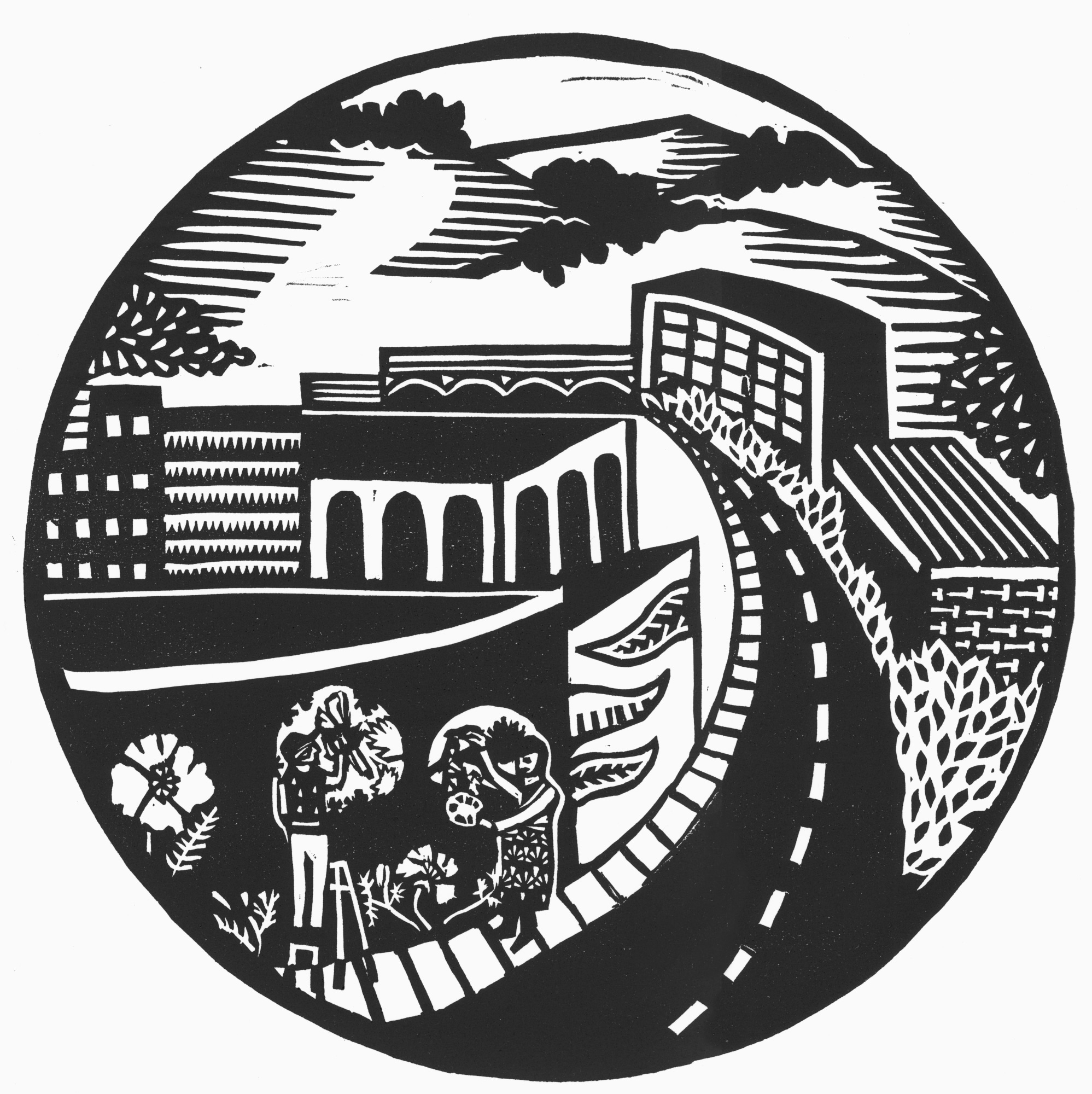 This public artwork illustrates how the themes of nature, community, and creativity connect through interlocking imagery. Wakida’s concept begins with an image of a bee on a bed of clover, and with each new image, the viewer's perspective widens. Visually, the perspective moves farther away from the bee while each image connects to the larger picture.