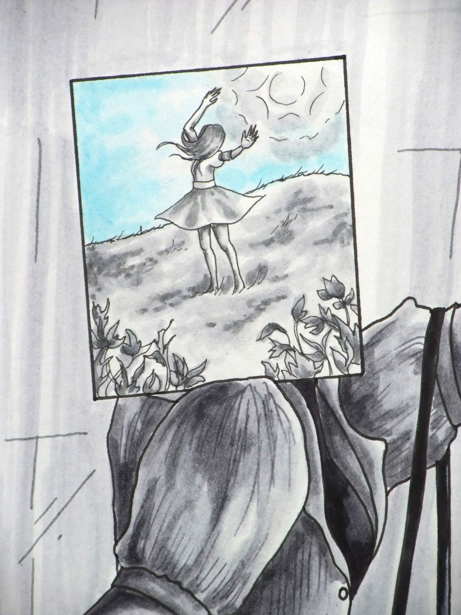 For this project, I asked the question of people I knew well and complete strangers alike, "If the inside of your mind was a place, what would it look like?" I then drew the answers. Many were very similar and could be combined into one interior, or even absolutely identical. I tried to capture the widest breadth of places possible. Each piece of the four depicts a different social environment where people are passing and interacting, all unaware of each others' interior landscape. Occupancies: Blue takes place in the city.