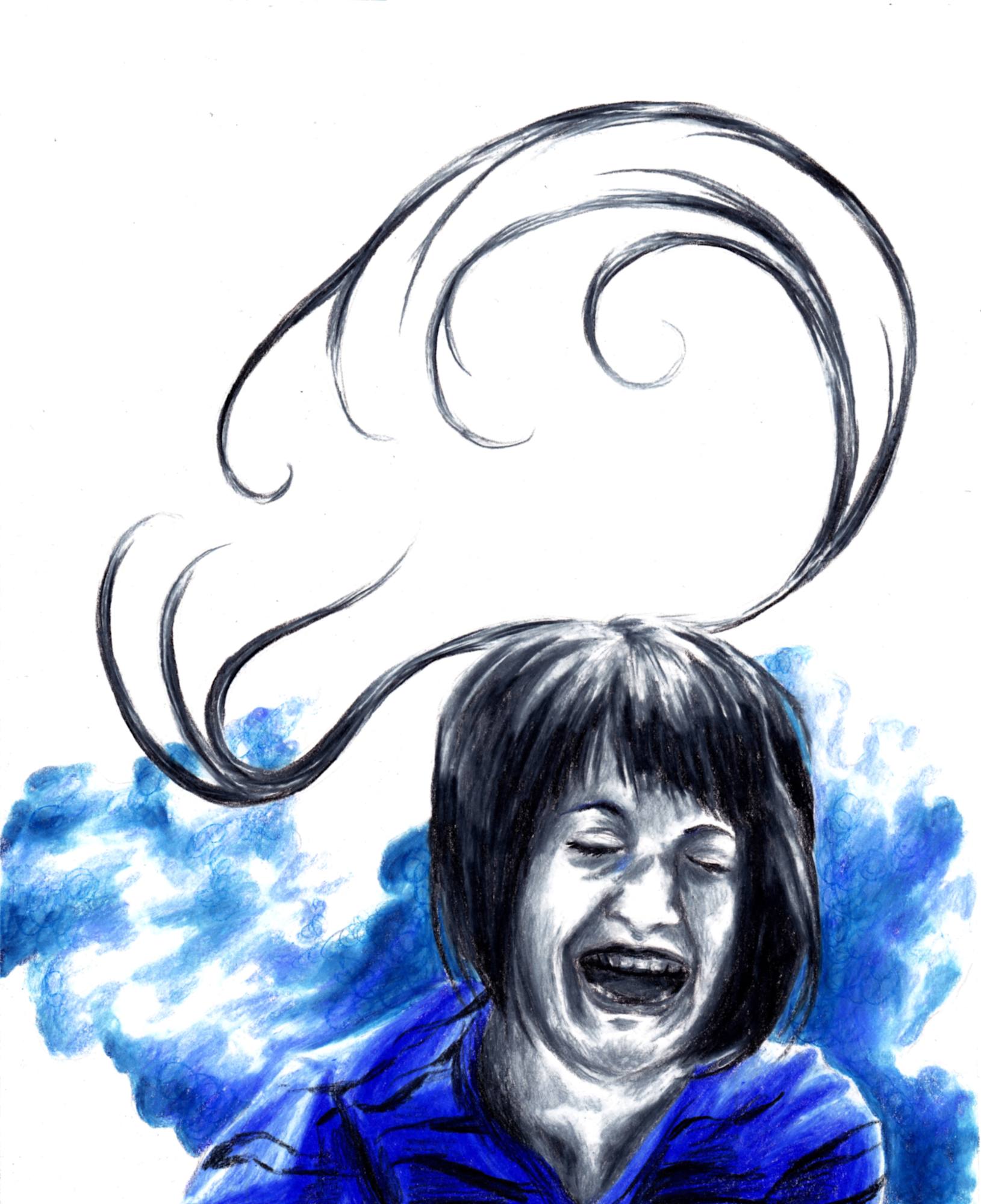 This drawing was created later as a companion piece to my first self portrait done outside of school, "Visual Thinker". The idea of adding surreal surprises into my portrait work would persist throughout all future creations. Fun fact: the face I am making was accidentally captured by a friend as I clumsily bashed my elbow on something while posing for a photo.