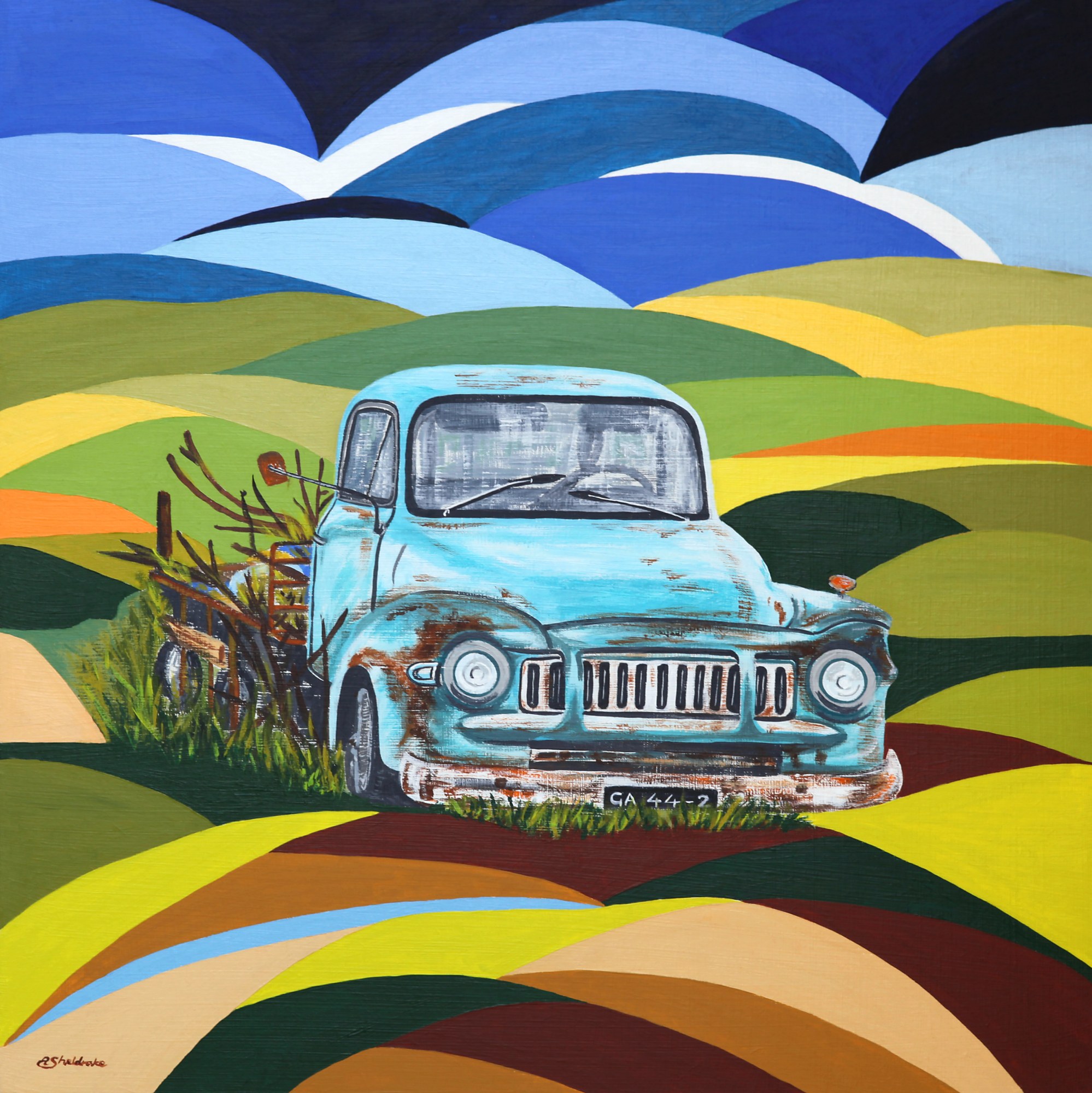 “I insisted that we stopped the car when I saw this old abandoned car half-hidden in the verge in a tiny village on the way to Monchique. I knew instantly that it would make a great painting – and sent Dave off up the road with his camera to shoot it for me – he had to dodge several cars and stand in the middle of the road to get the perfect shot!”