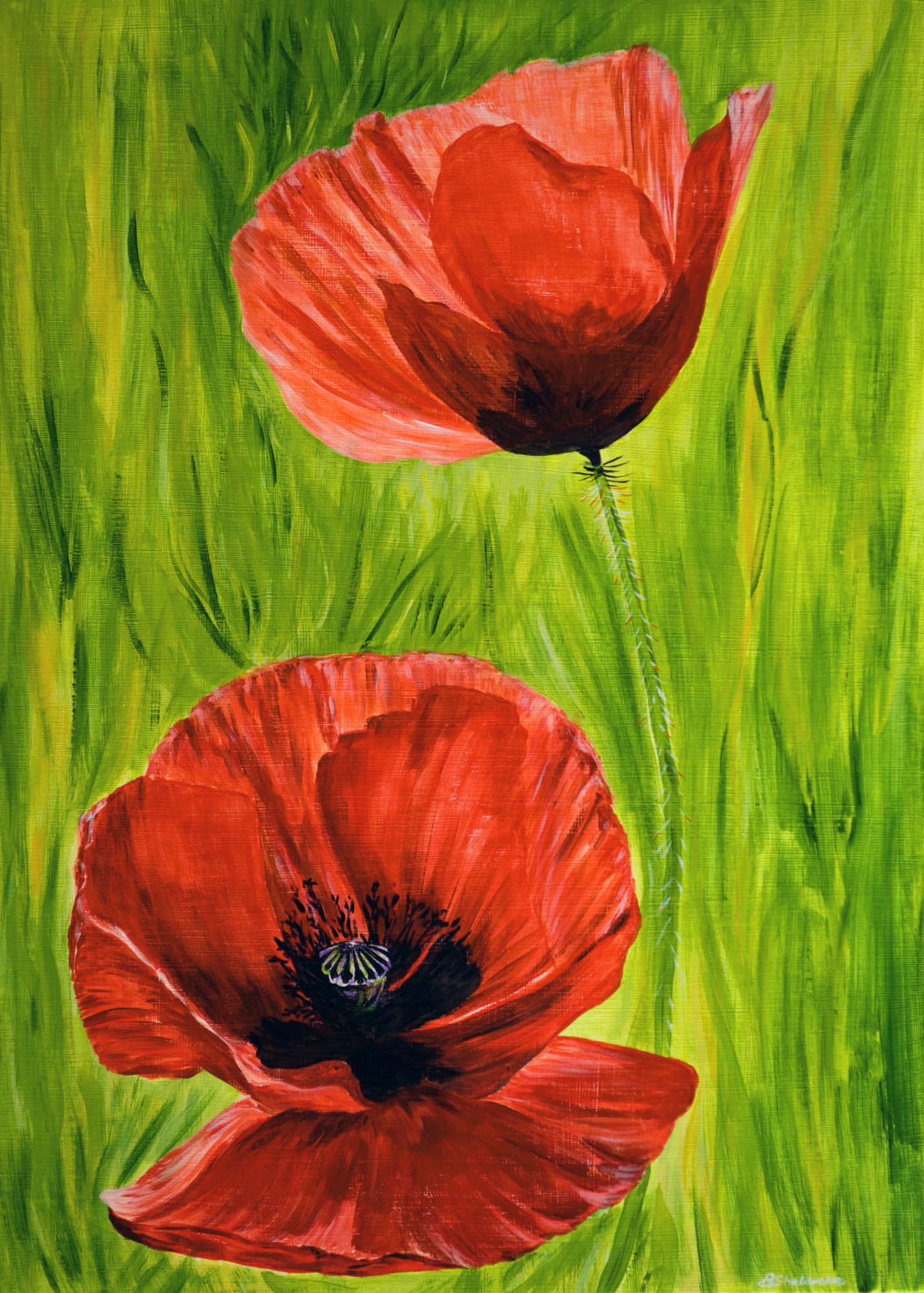 “A special request from a friend to combine these two poppies together into an A3 sized picture for a friend - happy to oblige of course! I always love painting poppies with their fantastic deep rich centres and gorgeous velvet like petals."