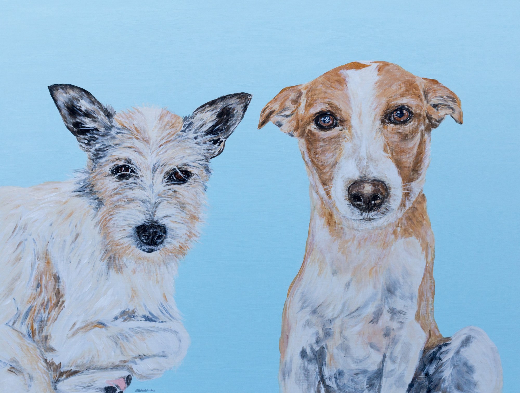 "It is always an extra treat when you know the pets you are painting. We visited their home and photographed them - and I fell a little bit in love with dear Jimmy; the gentle and sweet rescued Podengo. It was a real pleasure to paint this one and to already know the wall in the client's house where it is going to live."