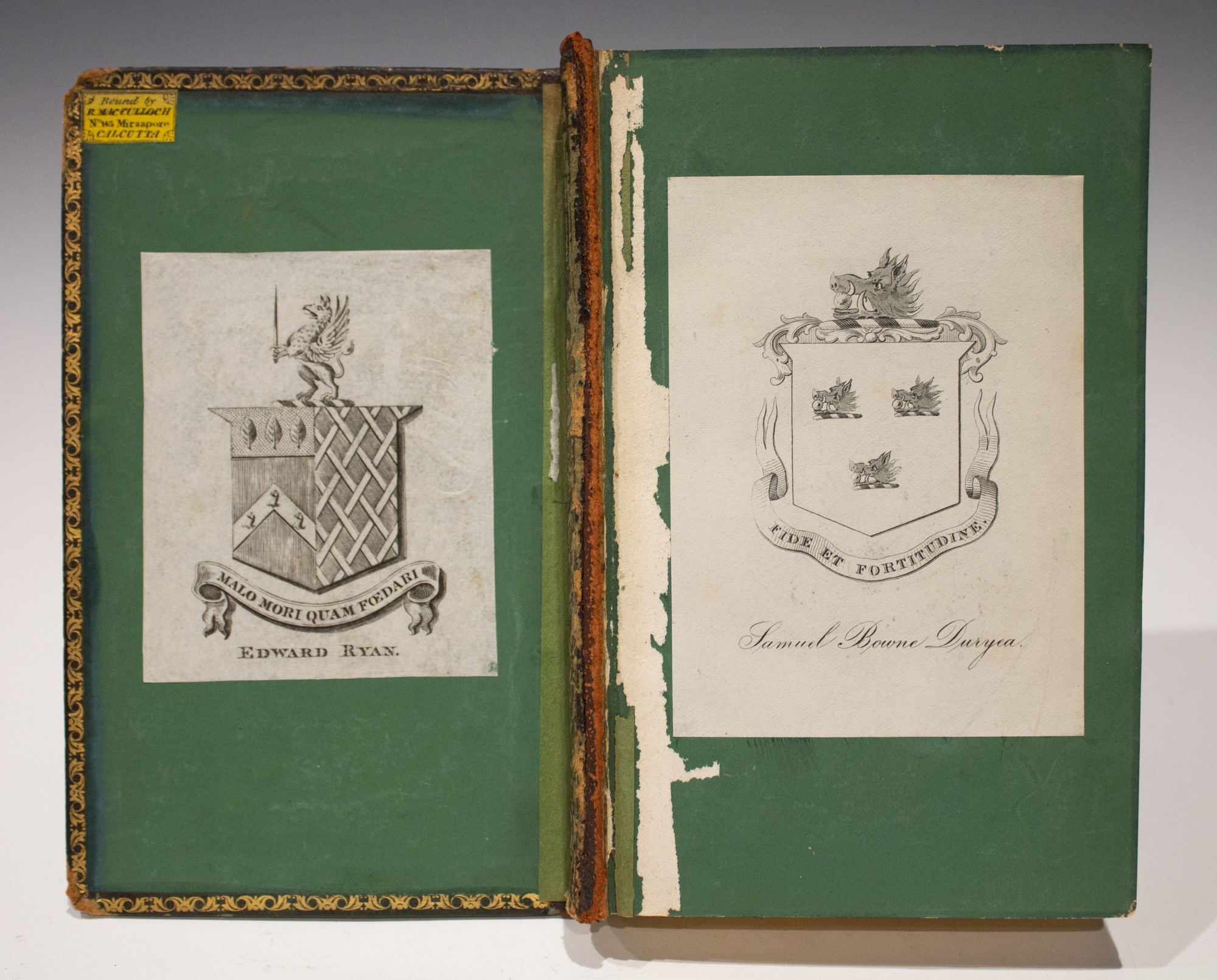 Bookplates indicate this book once belonged to Edward Ryan (1838-1924) of Ronaynes Court, Rochestown, Cork, Ireland and Samuel Bowne Duryea (1845-92) of Brooklyn, New York. Book is also signed by David Audlin, August 15, 1953.