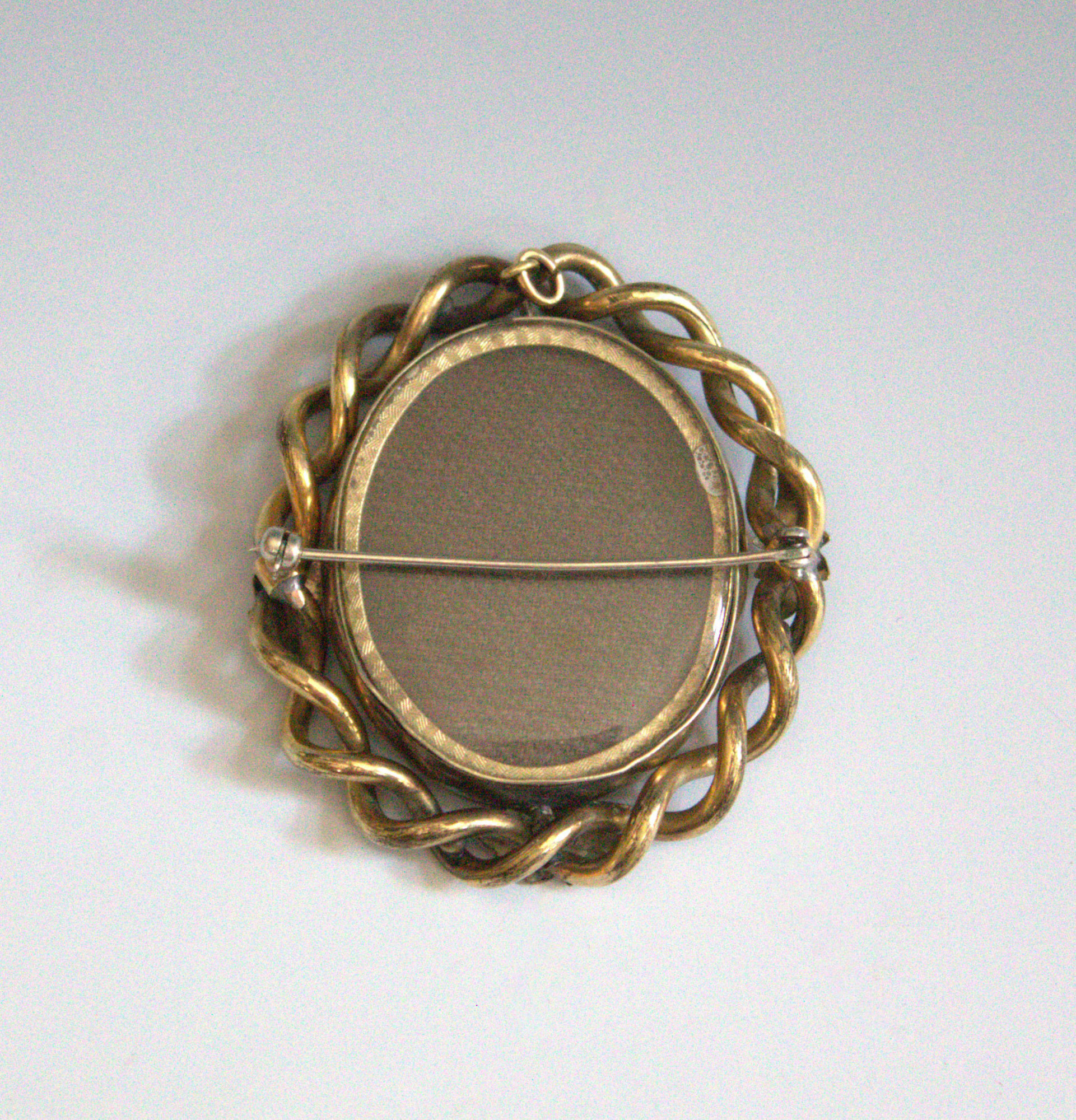 Mourning brooch with space for hair and monogrammed 'MBO.'