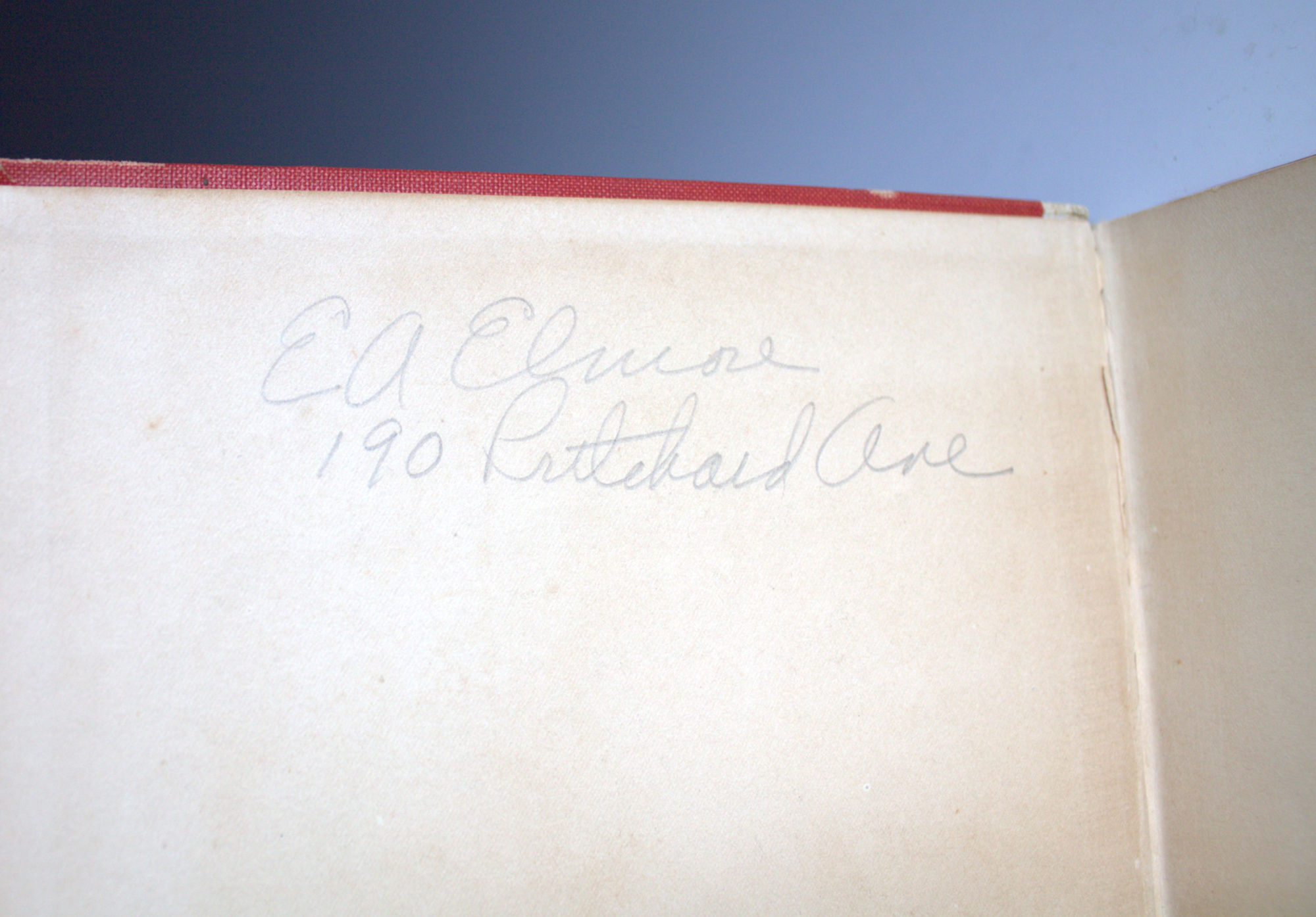 Inscribed by E.A. Elmore, 190 Pritchard Ave.
