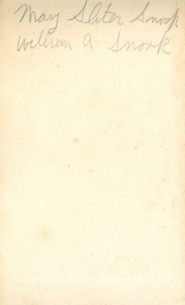 Depicts William A. Snook (1840-1923) and Mary Sliter Snook (1844-?) of Poestenkill, New York.