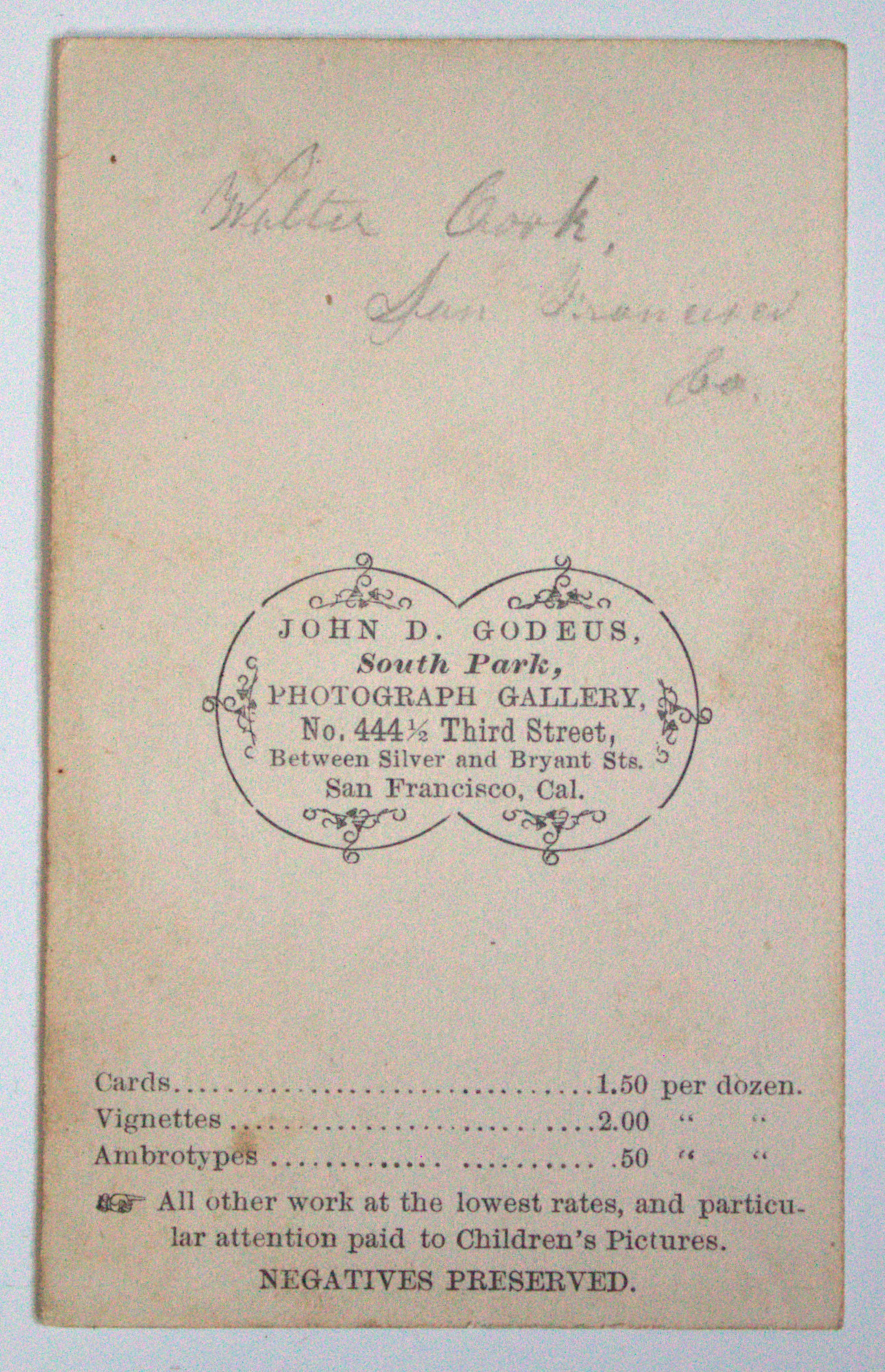 Carte de visite depicting Walter Cook of San Francisco, California.