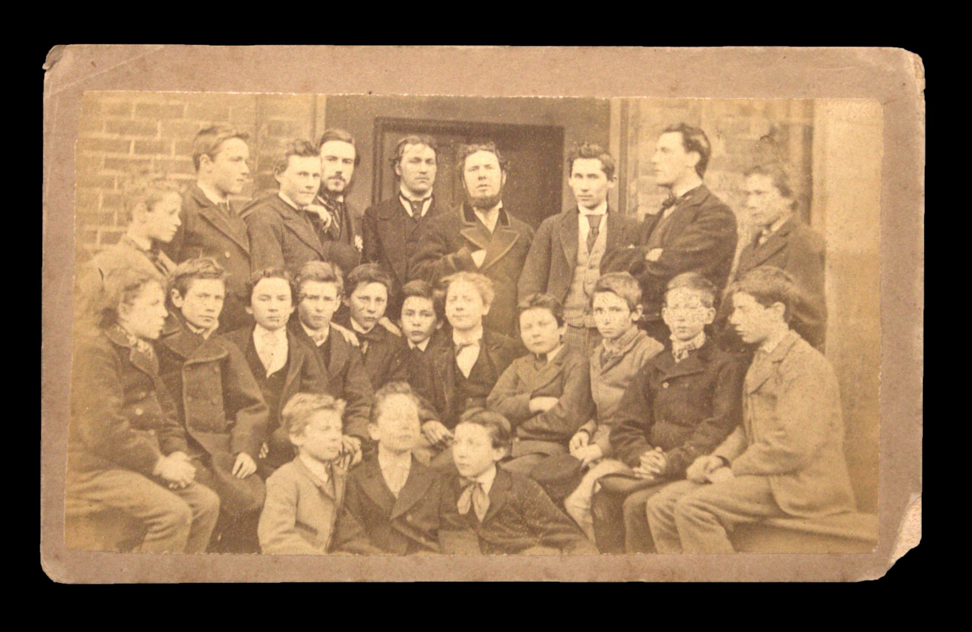 Horizontal format carte de visite depicting an unidentified group of boys with their presumed teachers.