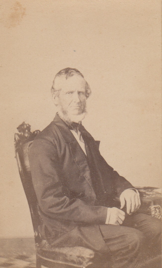 Depicts unidentified sitting man; a matching pair with another card depicting his wife.