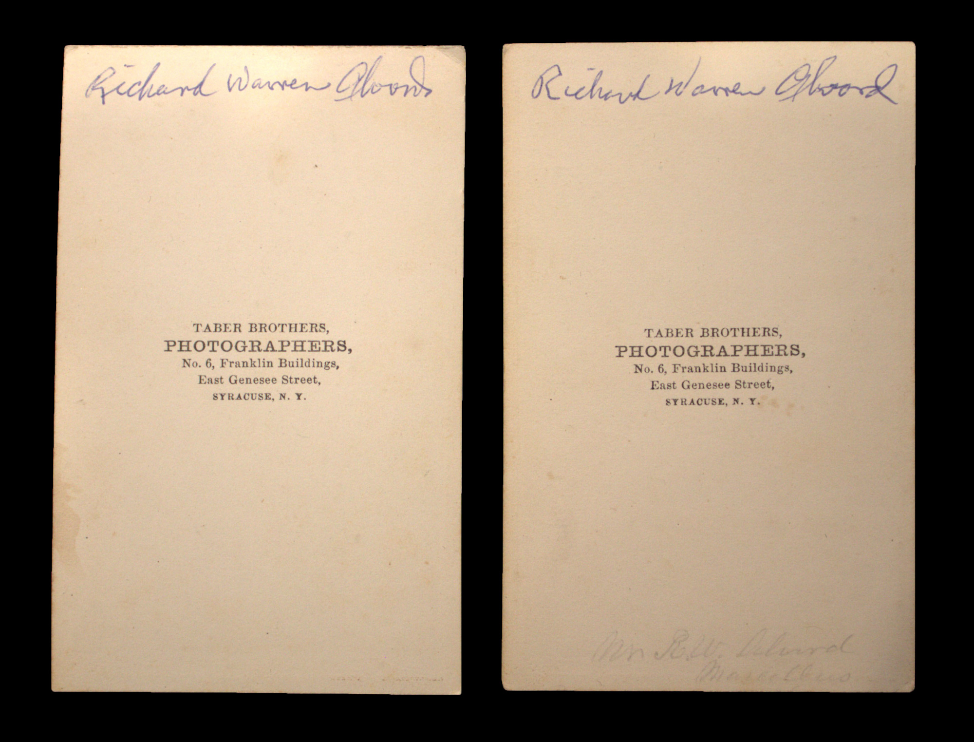 Pair of portraits depicting Richard Warren Alvord (1826-1918), a shoemaker and hotel keeper of Alvord House in Marcellus, New York. He was the son of Calvin and Rebecca Alvord.