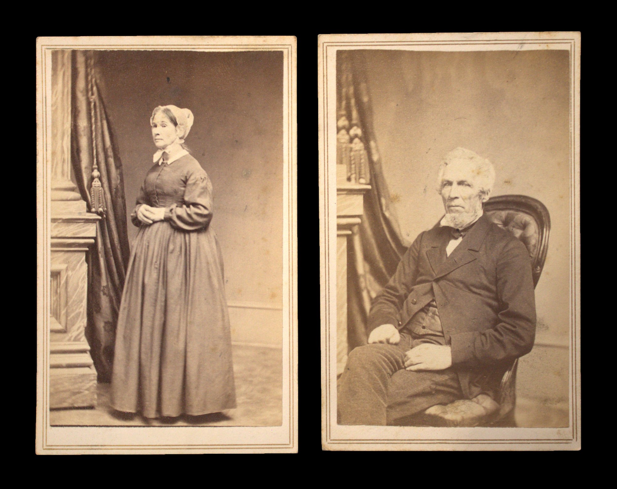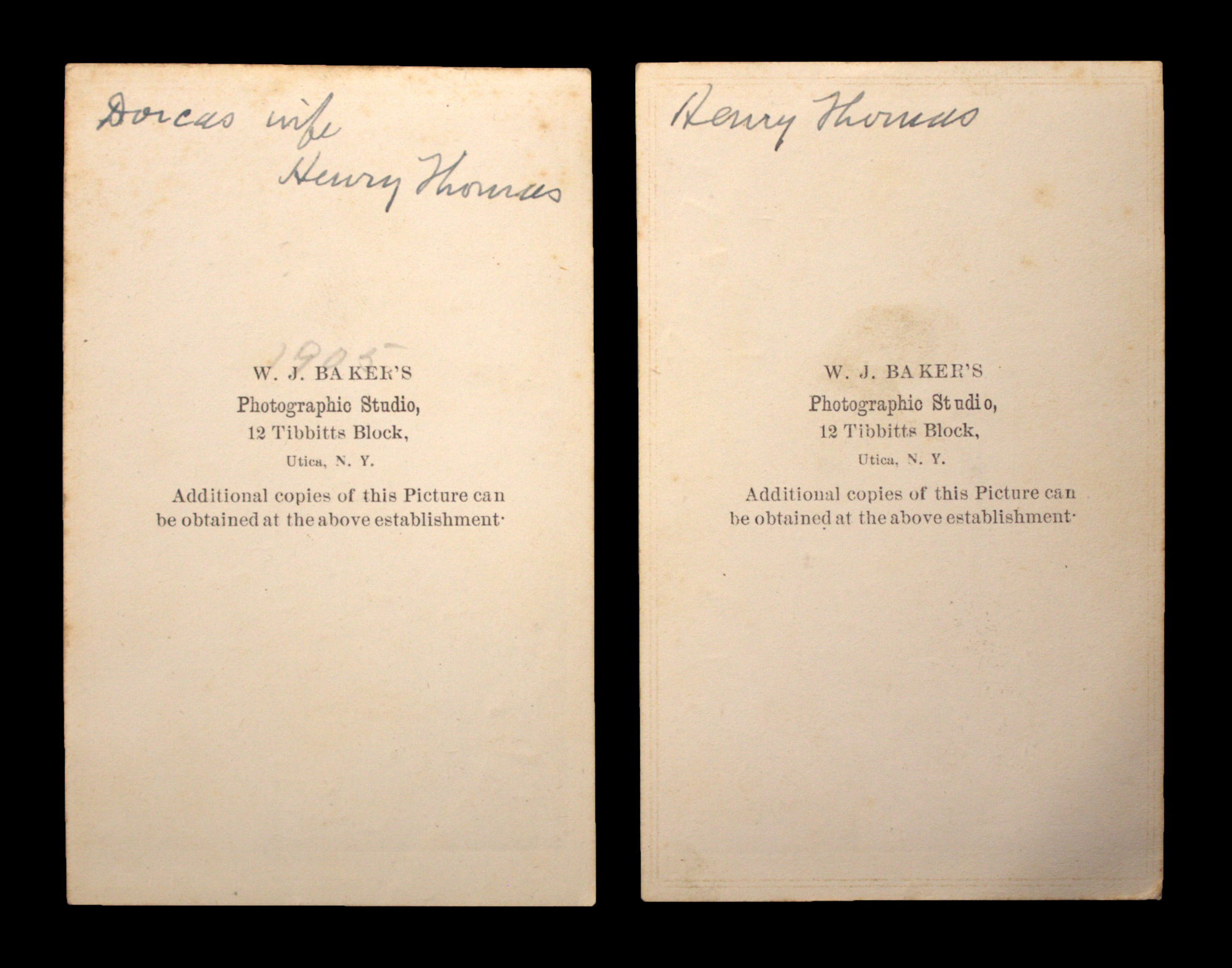 Portraits of Henry Thomas (1795-1889) and his second wife, Dorcas Rathbun Searing Thomas (1809-1891). The couple married in 1861 and moved from Columbia, Herkimer County, New York to Wisconsin. Henry was a farmer.