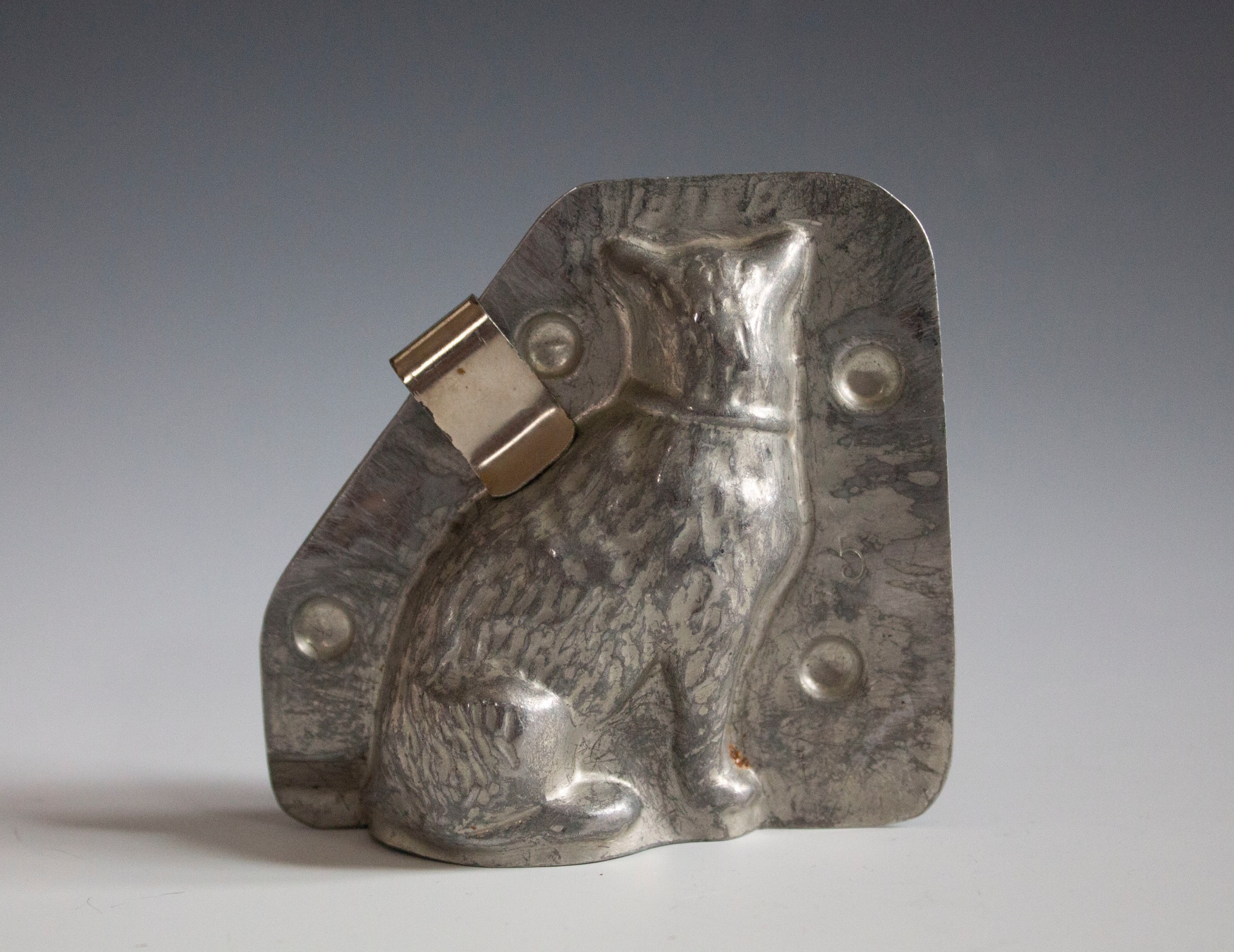 Chocolate mold in the shape of a seated cat. Mold was used at Brown's Candy Kitchen (1951-2023) in Mt. Pleasant, Pennsylvania.