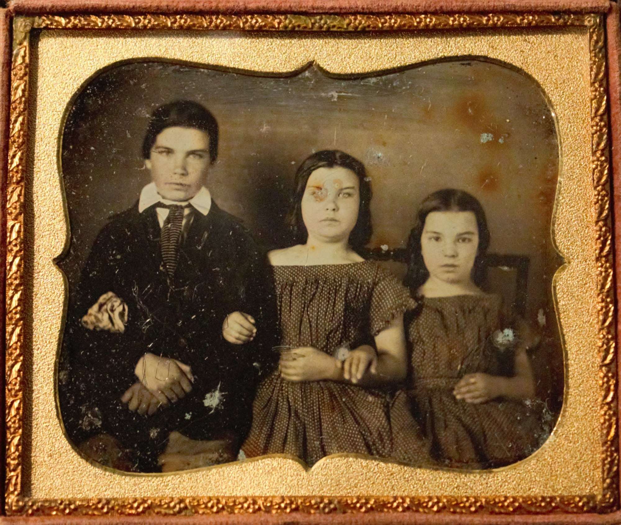 1/6 plate daguerreotype depicting three seated children.