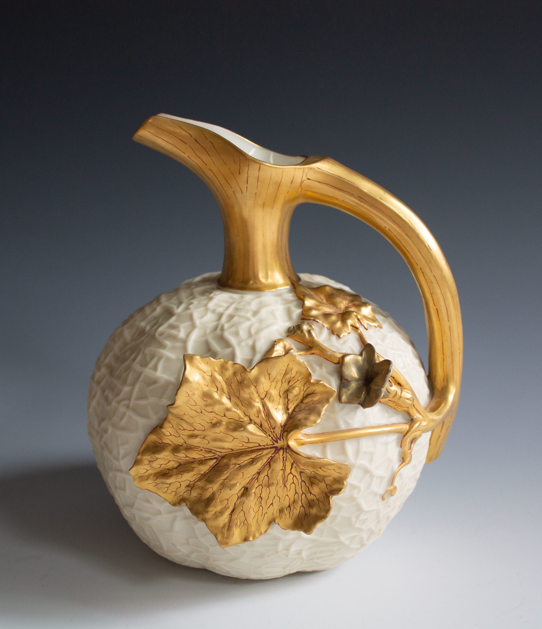 Melon-shaped jug with gilt leafy vine.