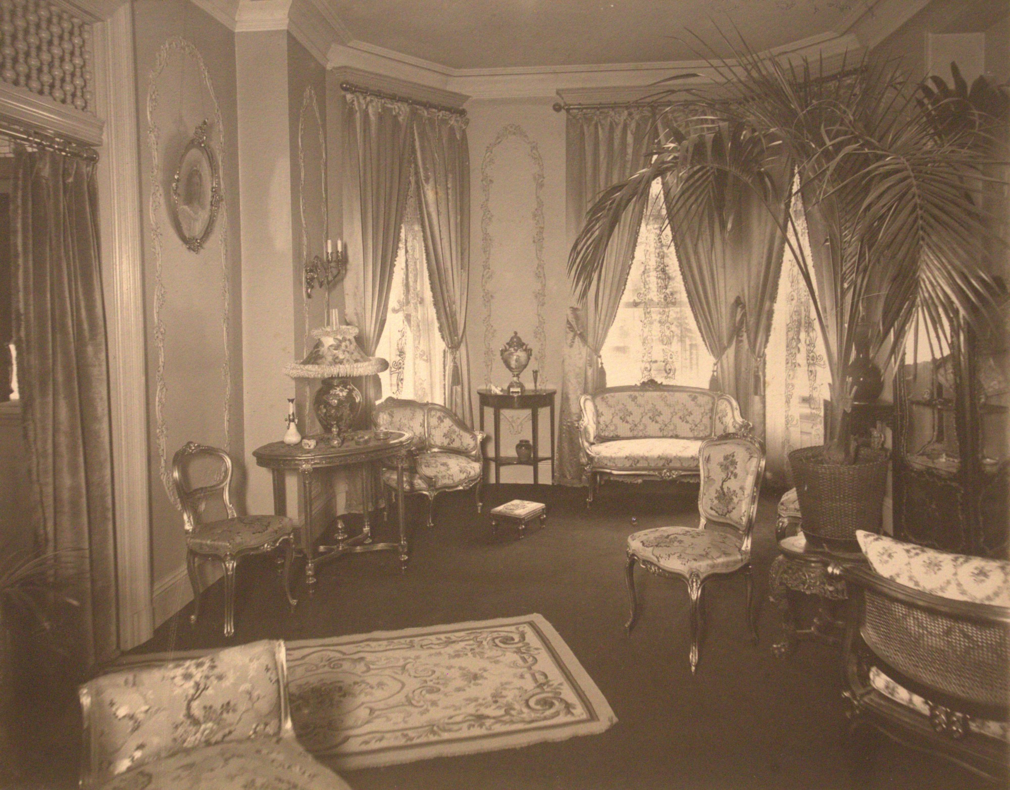 Two large format photographs depicting the front parlor of an unidentified home from two vantage points. Likely an American parlor in the French taste.
