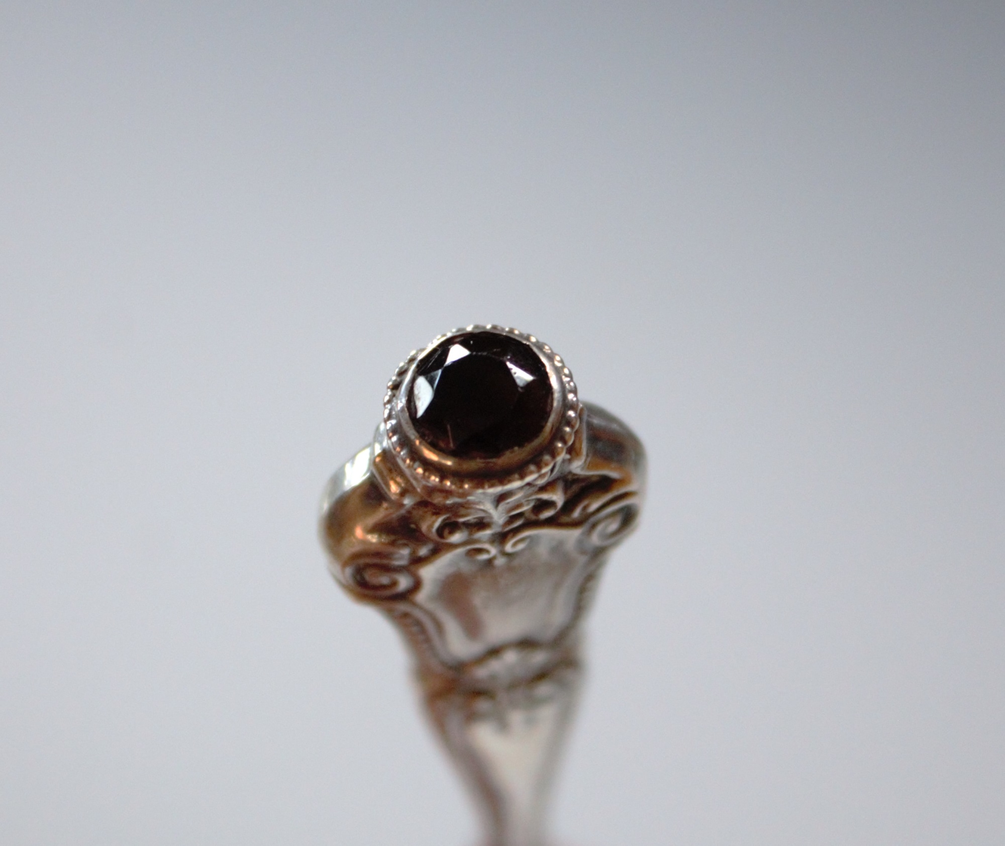 Letter opener with sterling silver handle and applied amethyst jewel.