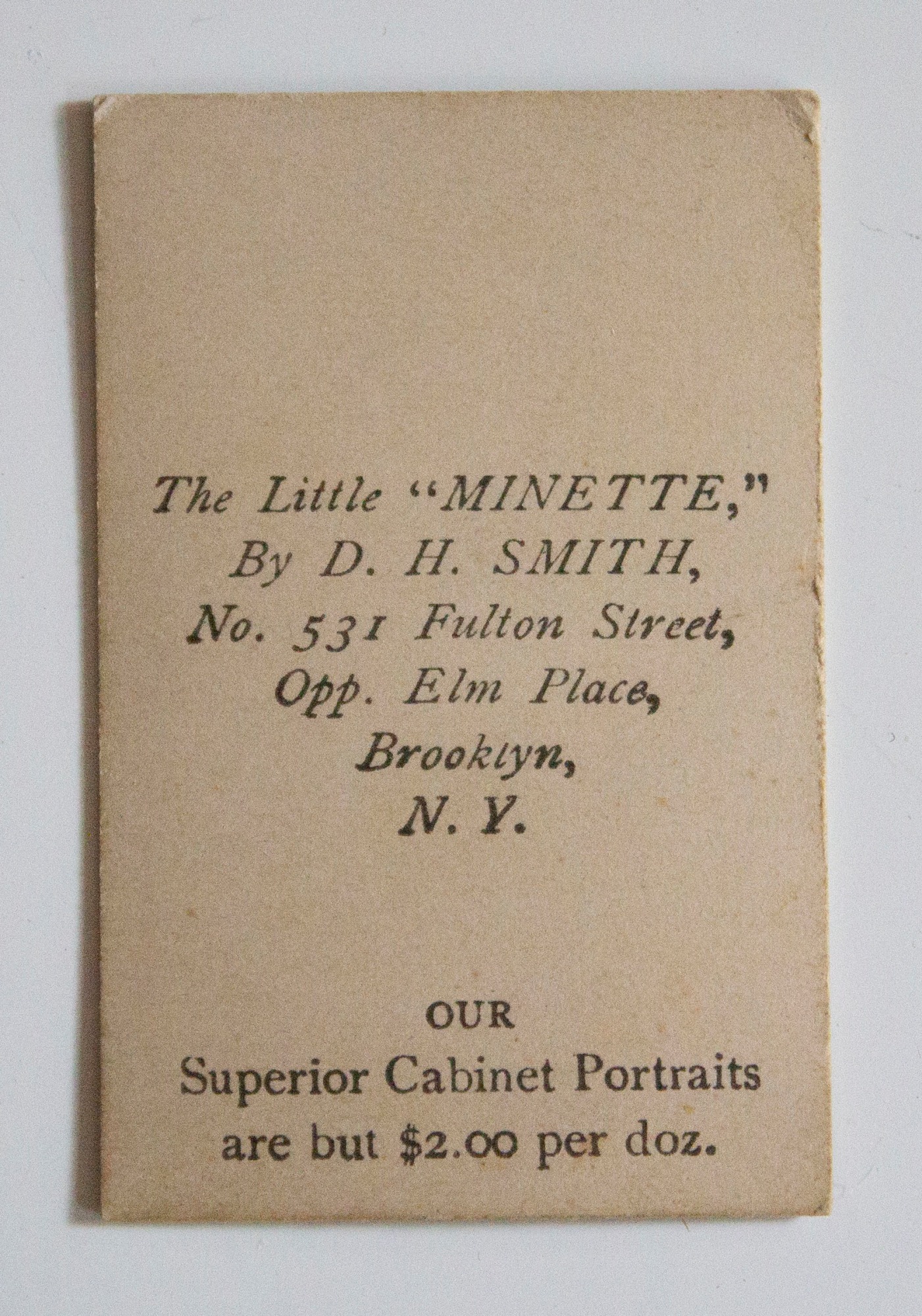 Portrait of an unidentified woman in "the Little Minette" format, which is smaller than a carte de visite.