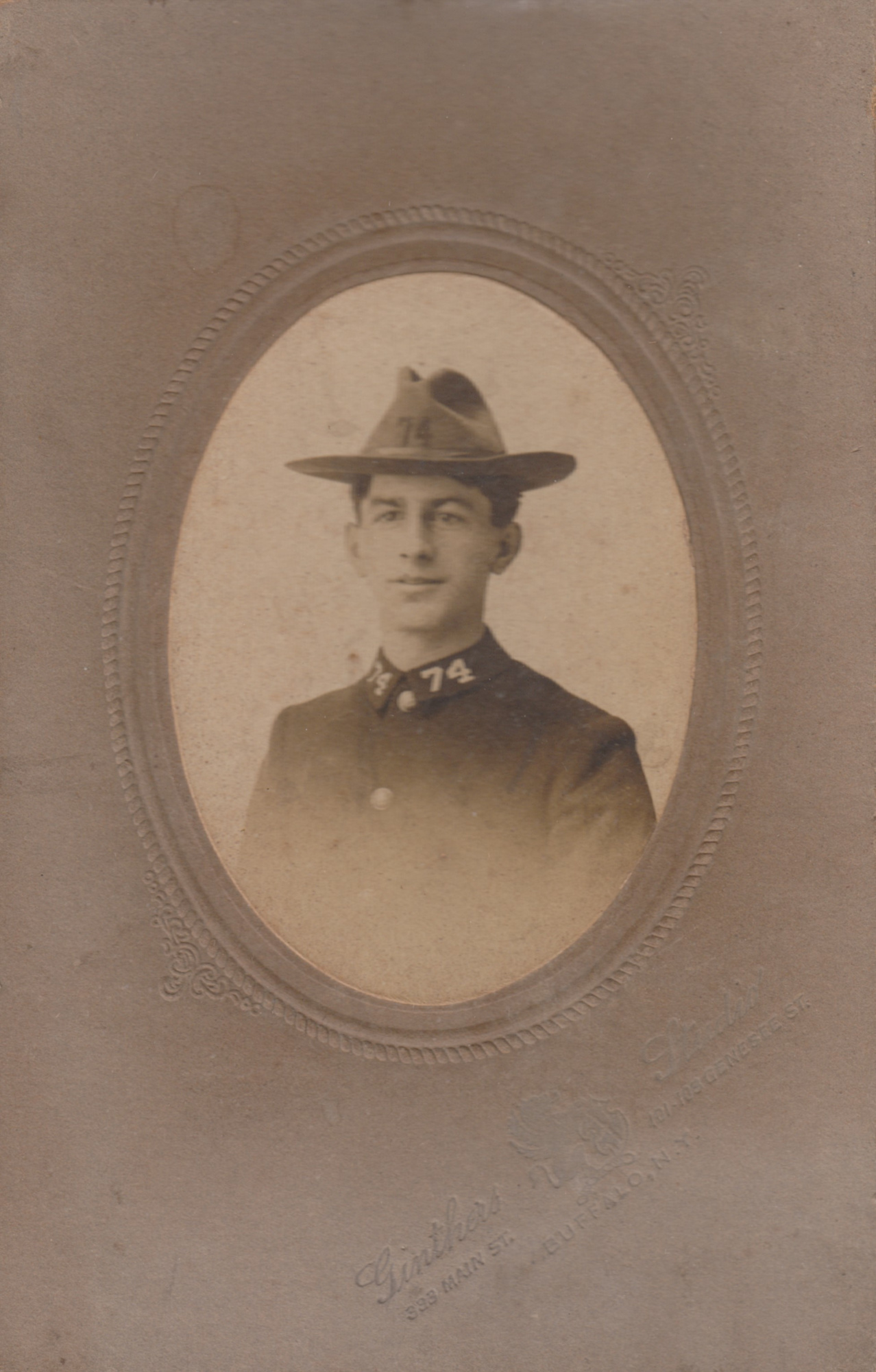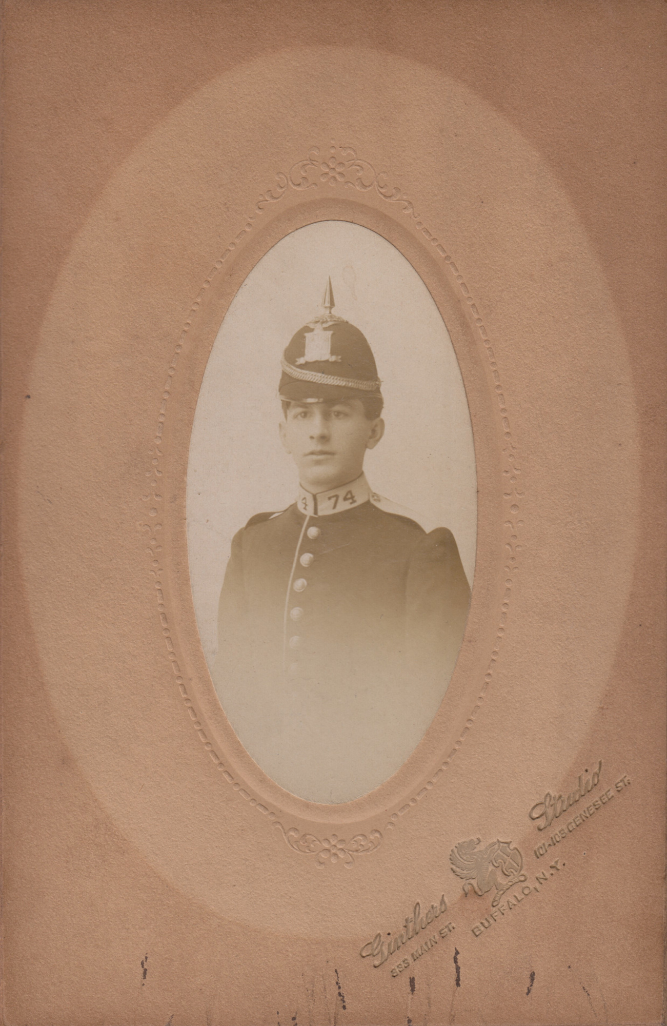 74th Regiment tankard depicting the armory in Buffalo, New York accompanied by three photographs of William Nunn (1883-1965).