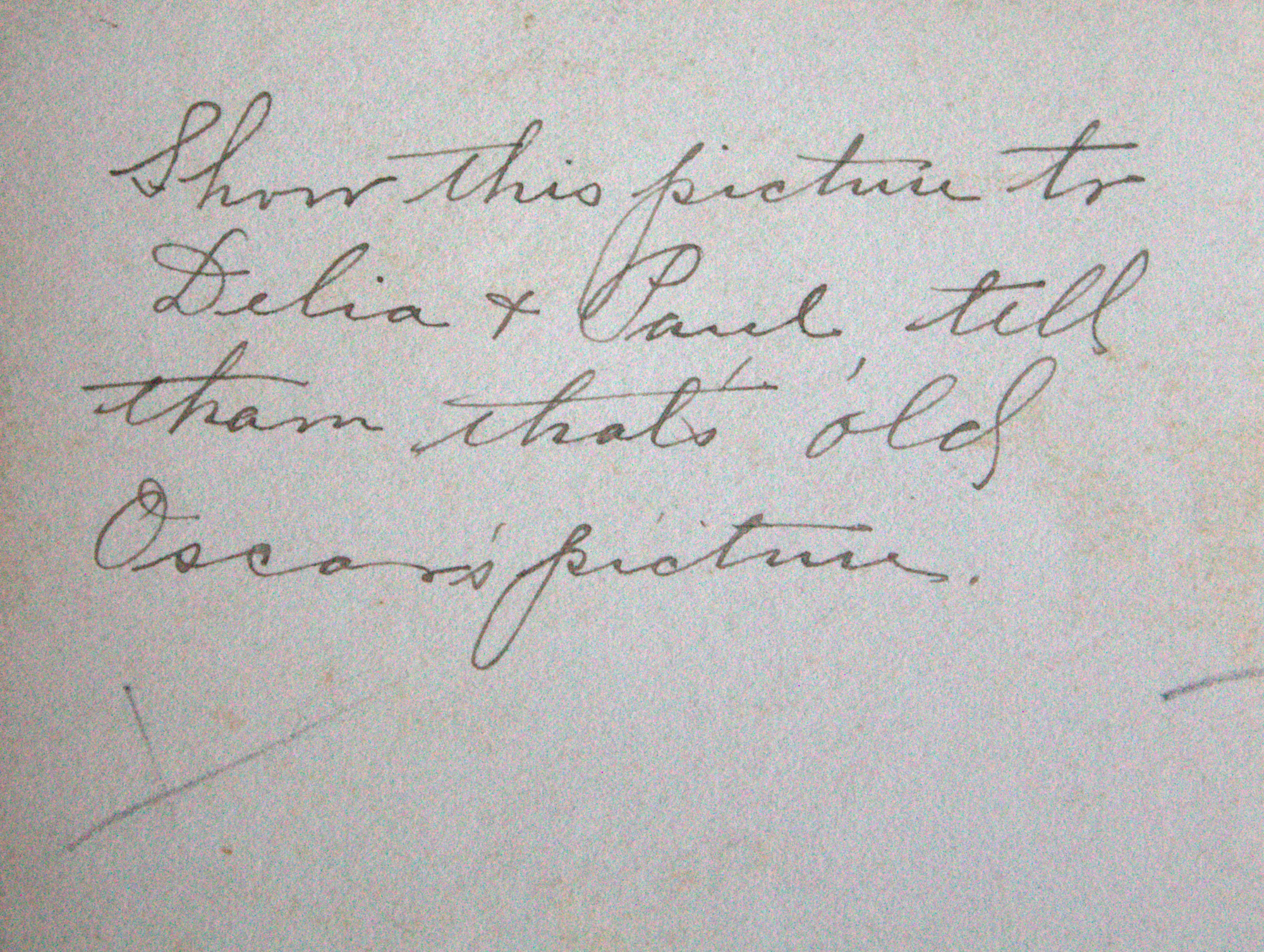 "Show this picture to Delia & Paul, tell them that's old Oscar's picture."