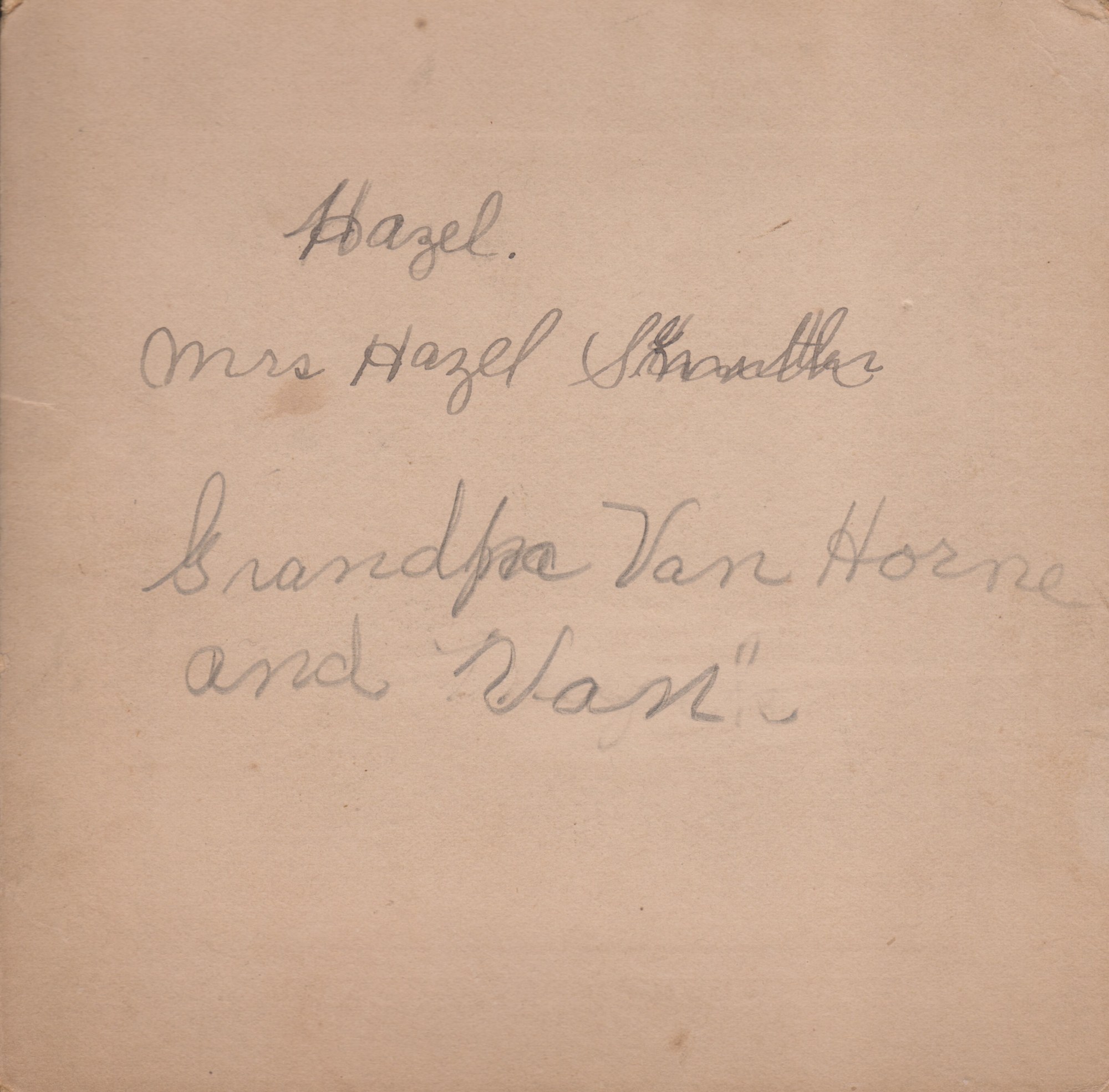 - Signature: Verso: 'Hazel / Mrs. Hazel Smith / Grandpa Van Horne / and Van'