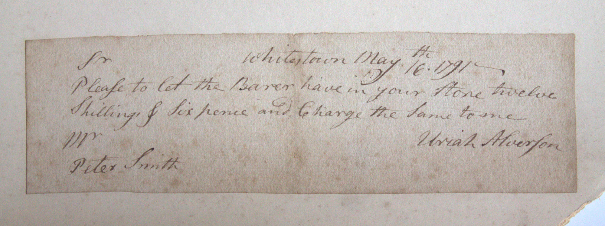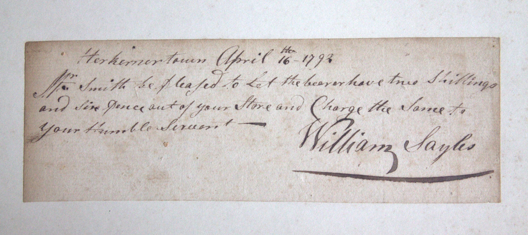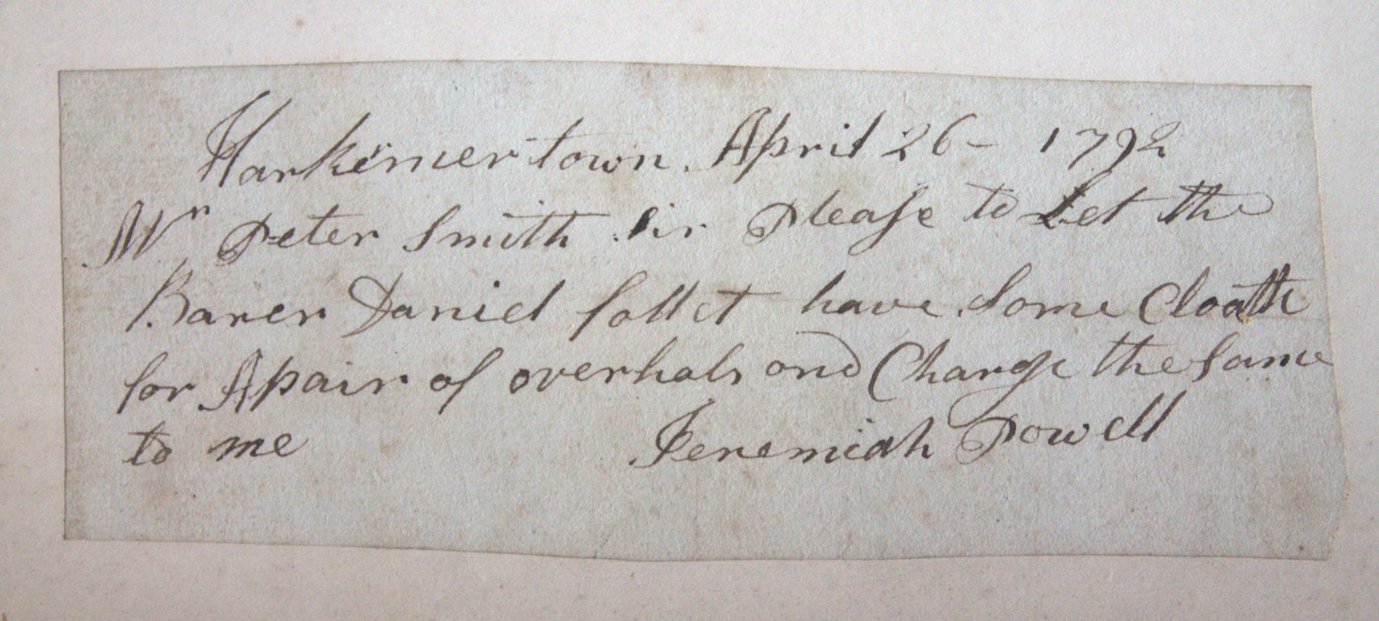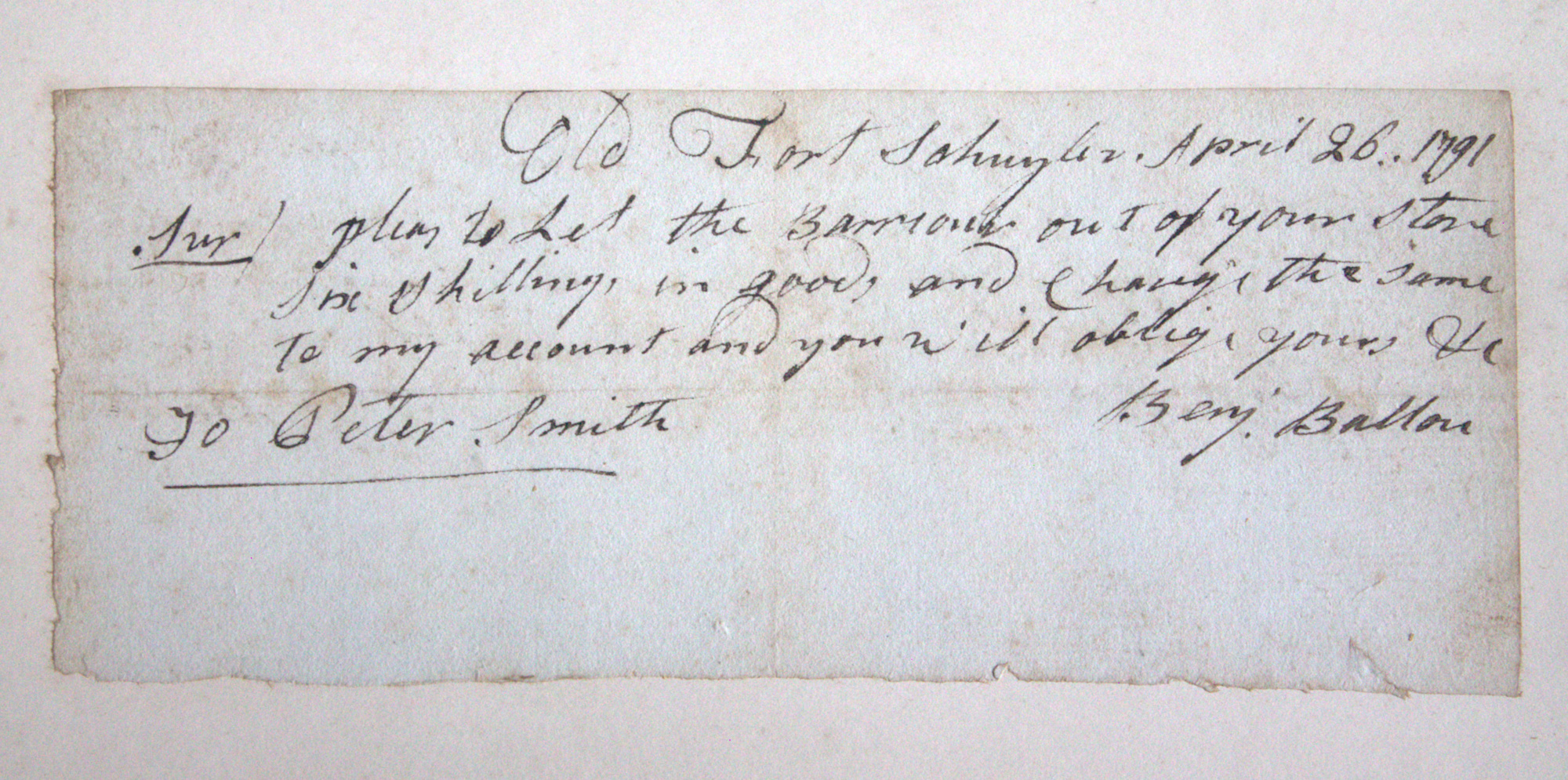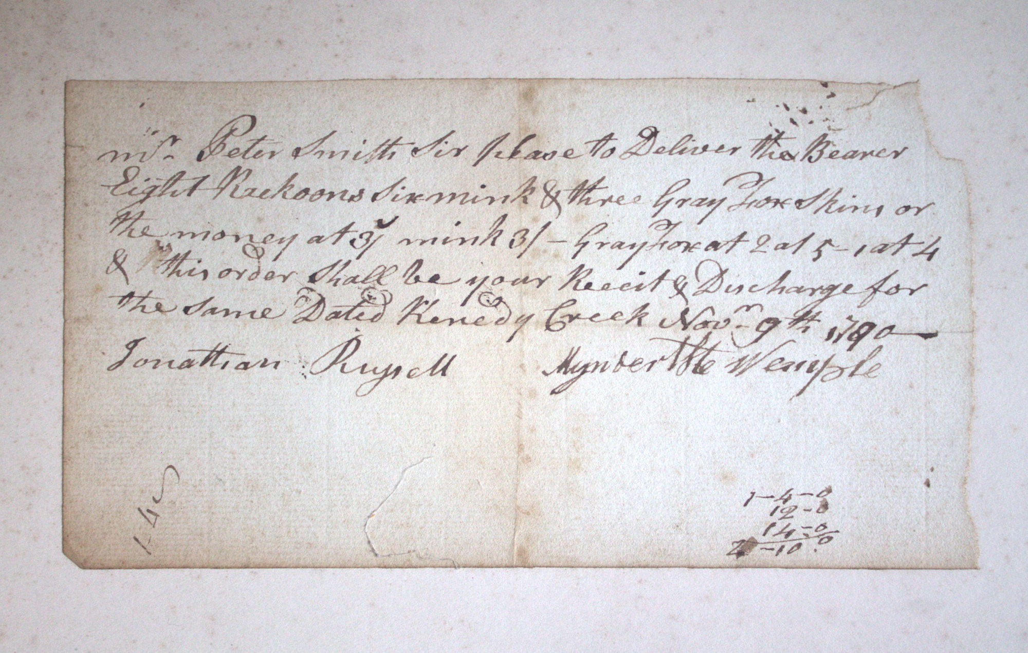 Portfolio containing a collection of 18th century documents, largely receipts and promissory notes written to Peter Smith (1768-1837), general store owner at Fort Schuyler, Utica, New York. Smith was a fur trapper and formed a close relationship with Chief Skenandoa of the Oneida people. Peter Smith's son was the famous abolitionist, Gerrit Smith.