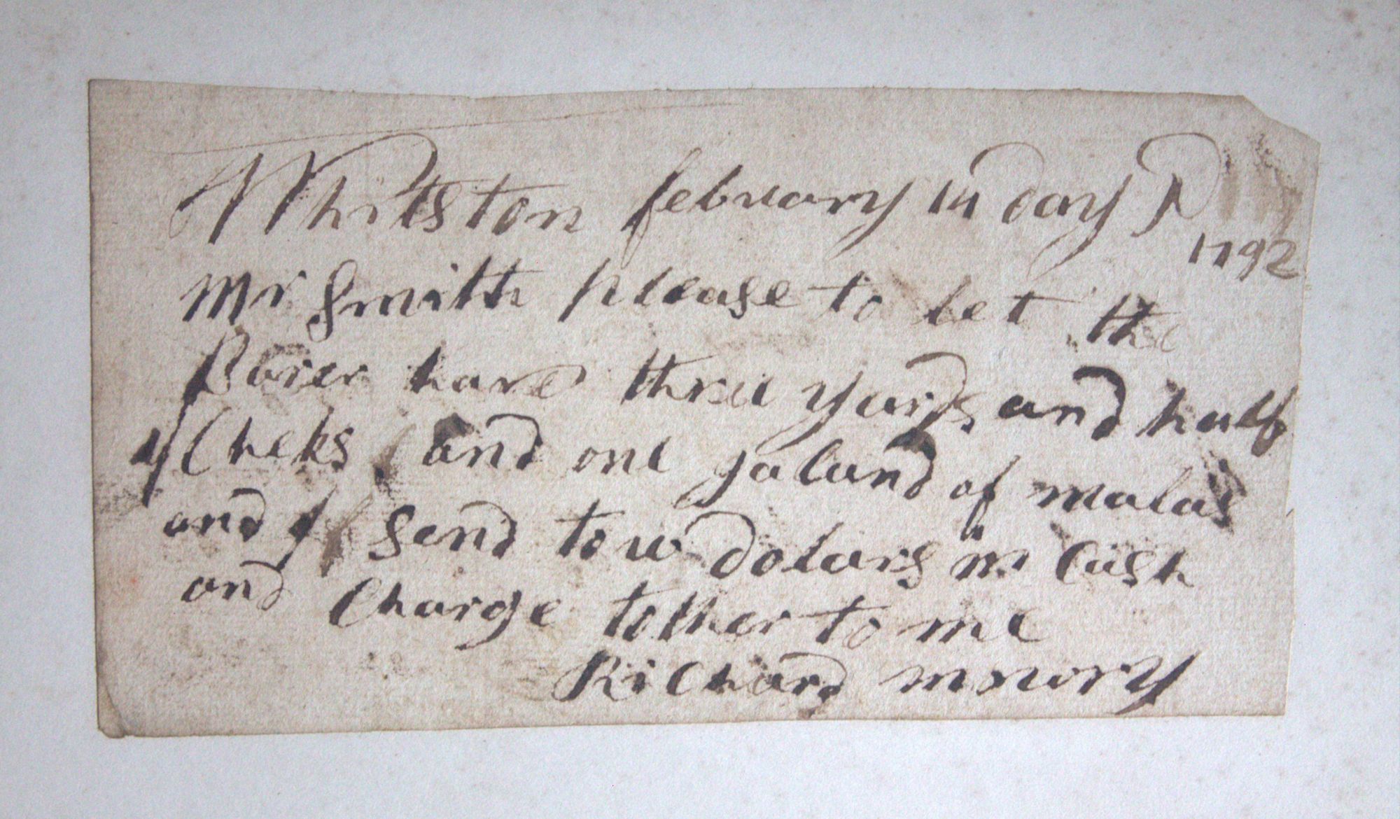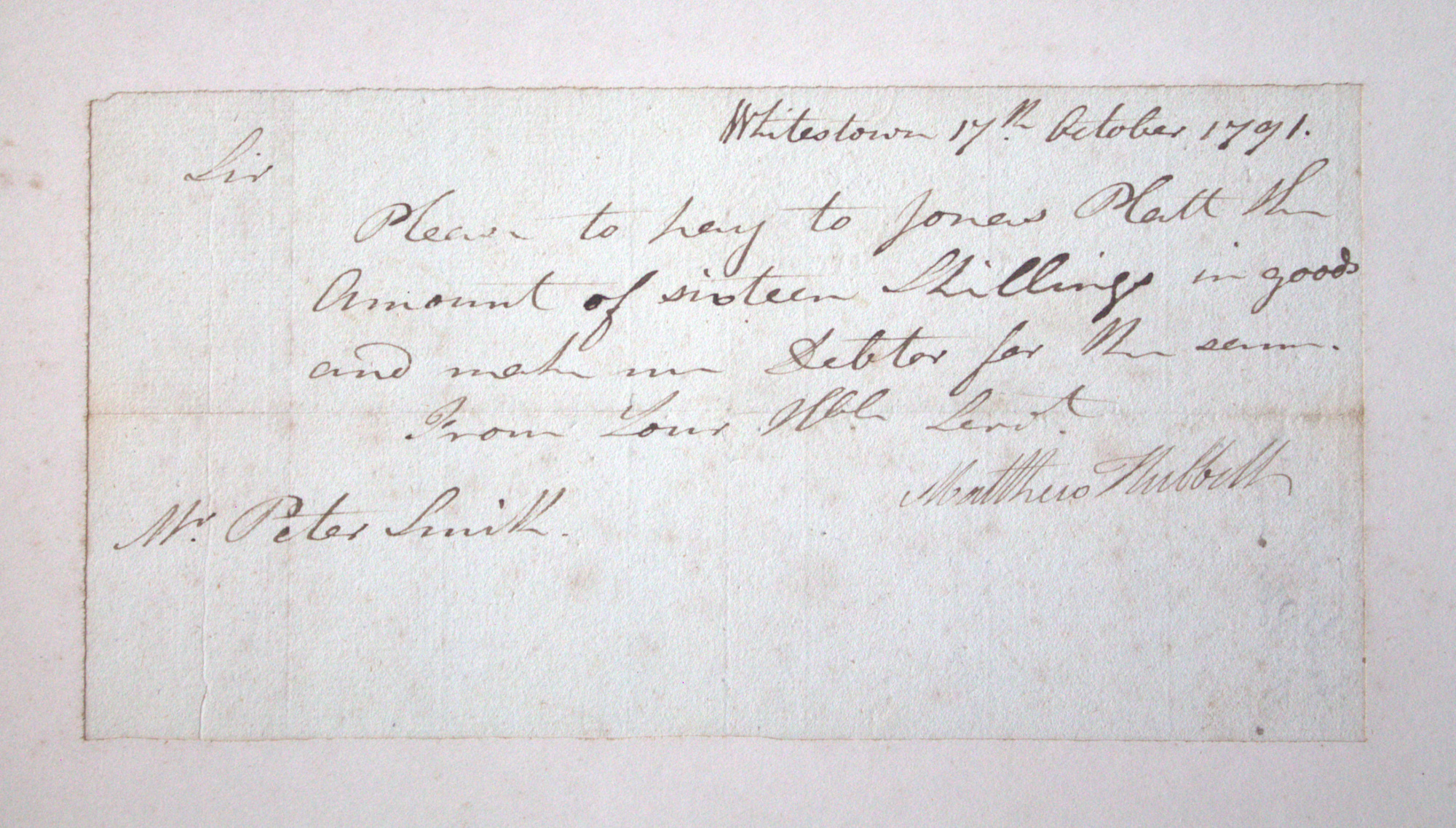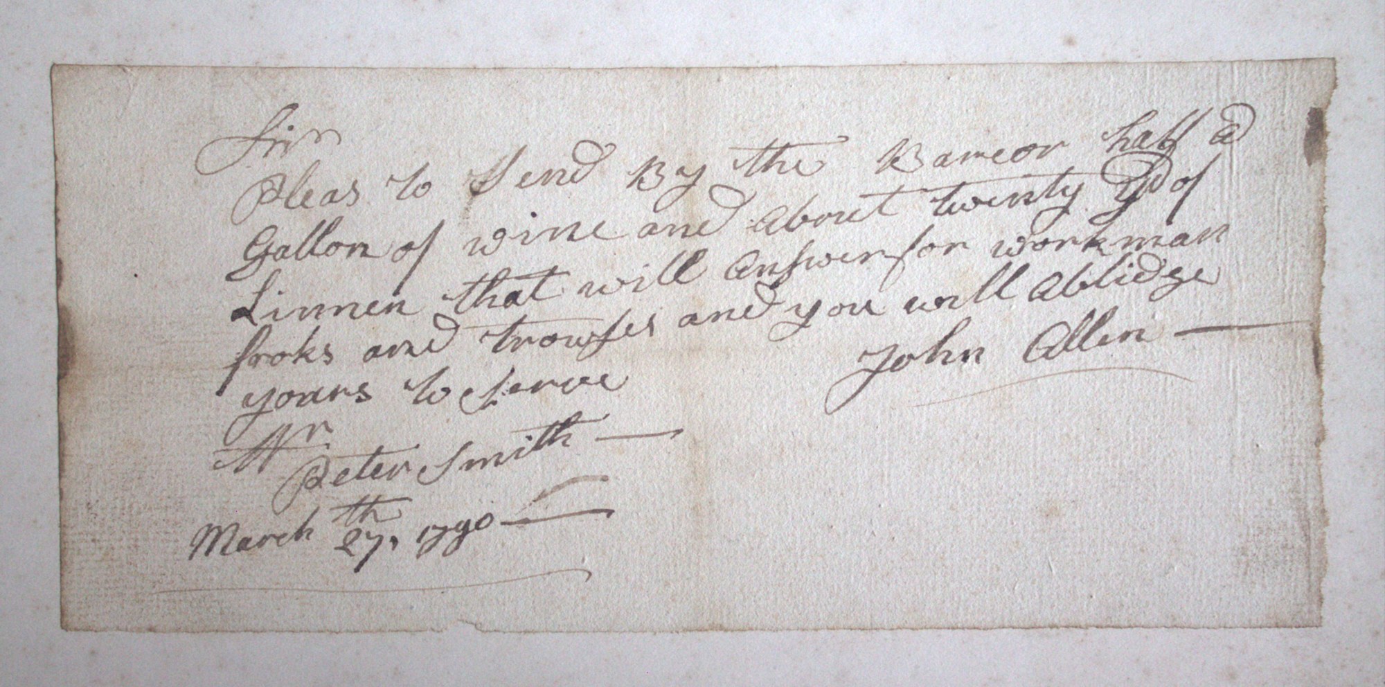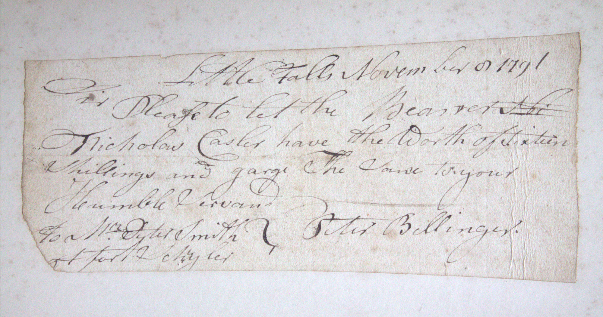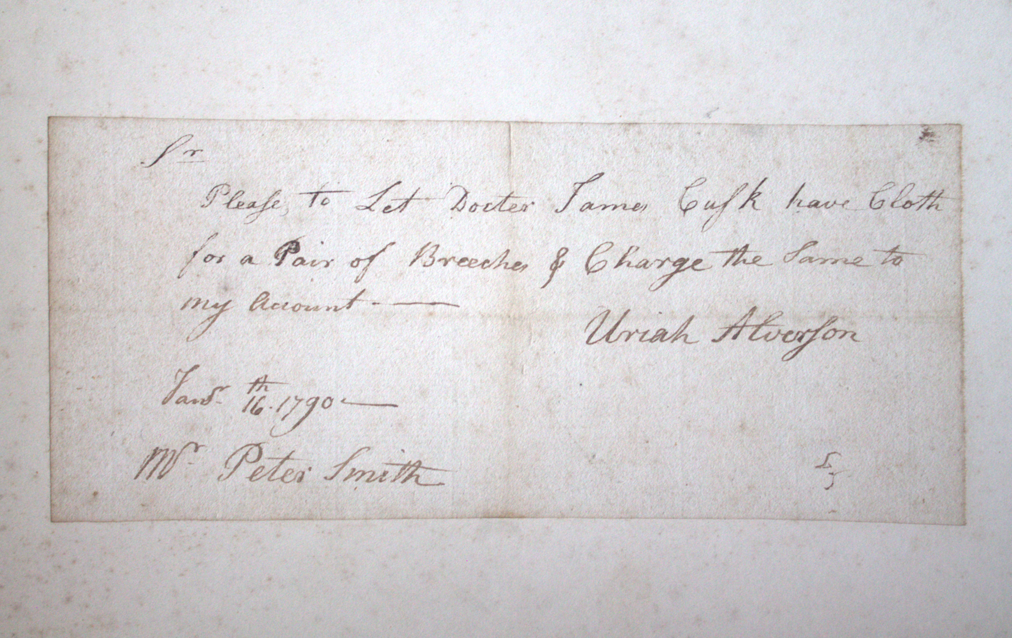 Portfolio containing a collection of 18th century documents, largely receipts and promissory notes written to Peter Smith (1768-1837), general store owner at Fort Schuyler, Utica, New York. Smith was a fur trapper and formed a close relationship with Chief Skenandoa of the Oneida people. Peter Smith's son was the famous abolitionist, Gerrit Smith.