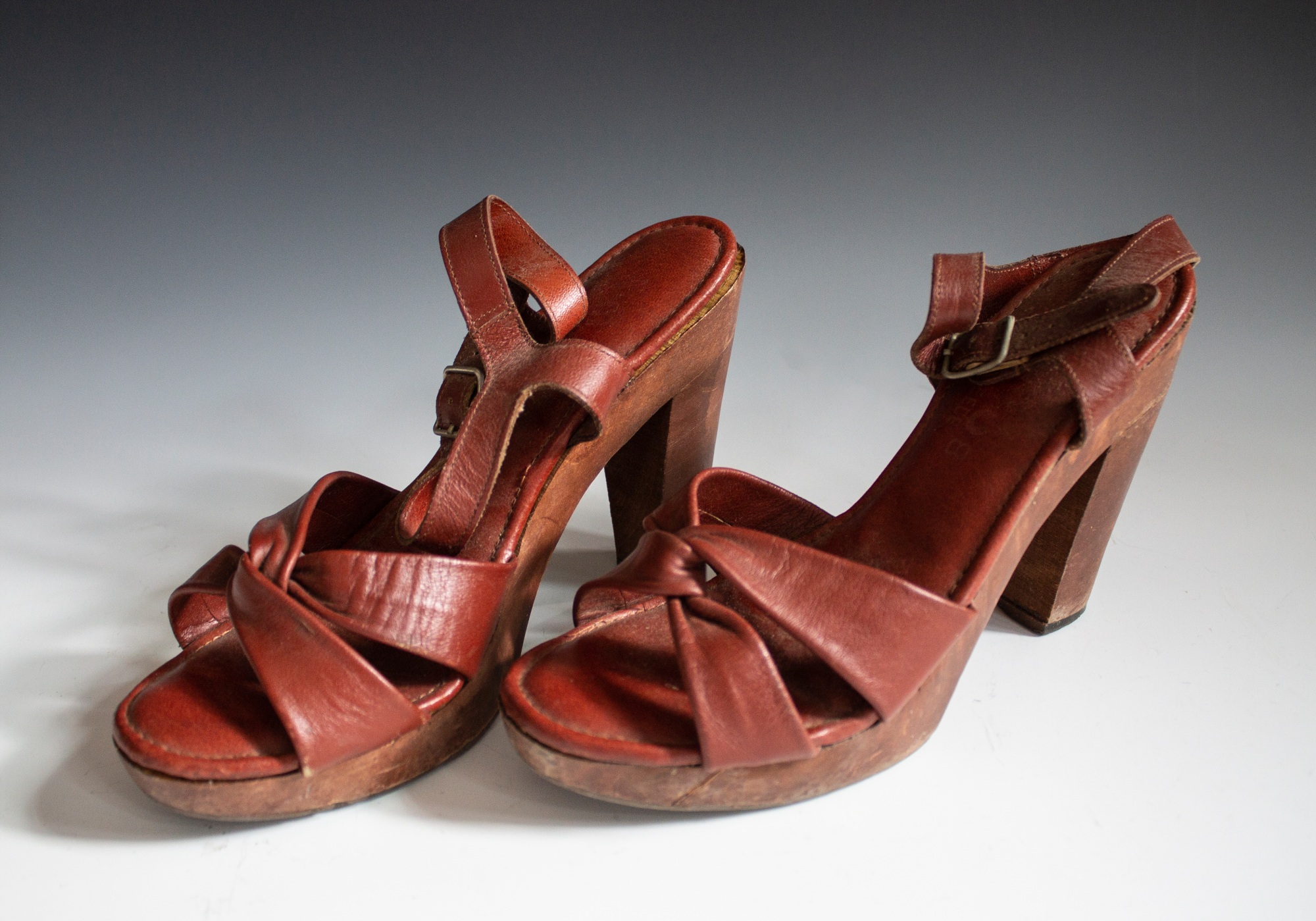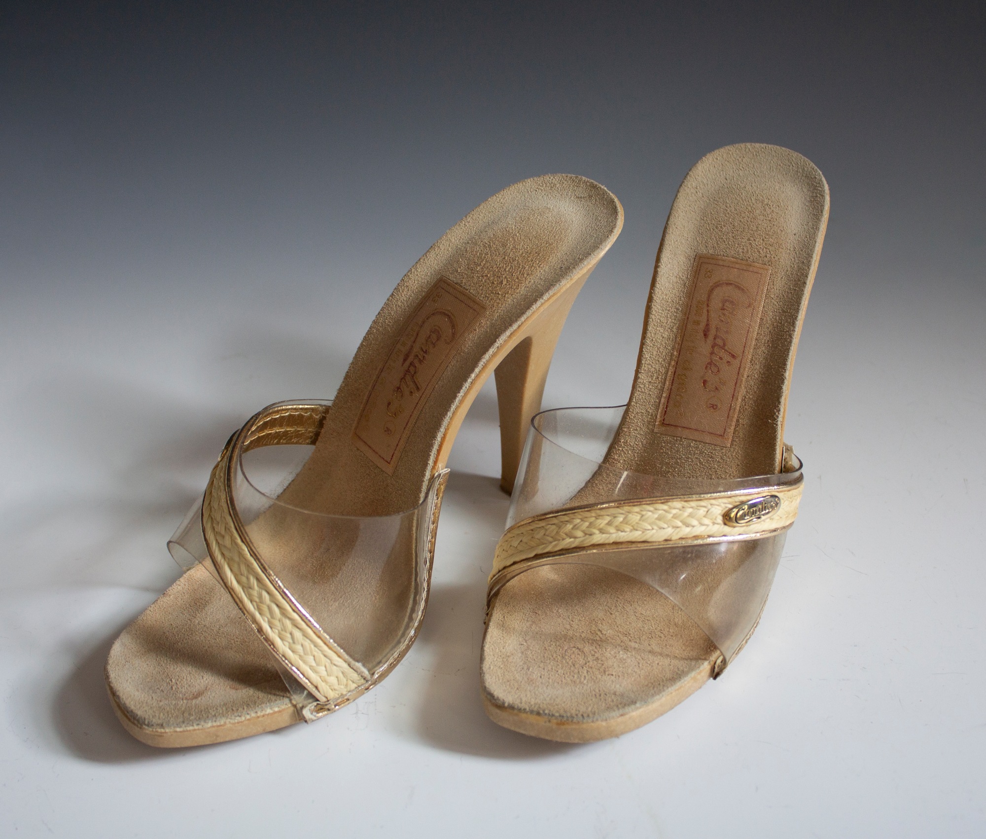 Nine pairs of shoes dating between 1945 and the 1980s. Makers include Candies, Avanti Originals, Gino Dalsini, Dalsan, Fastenberg's, Air Steps, and Highlights of Fashion.