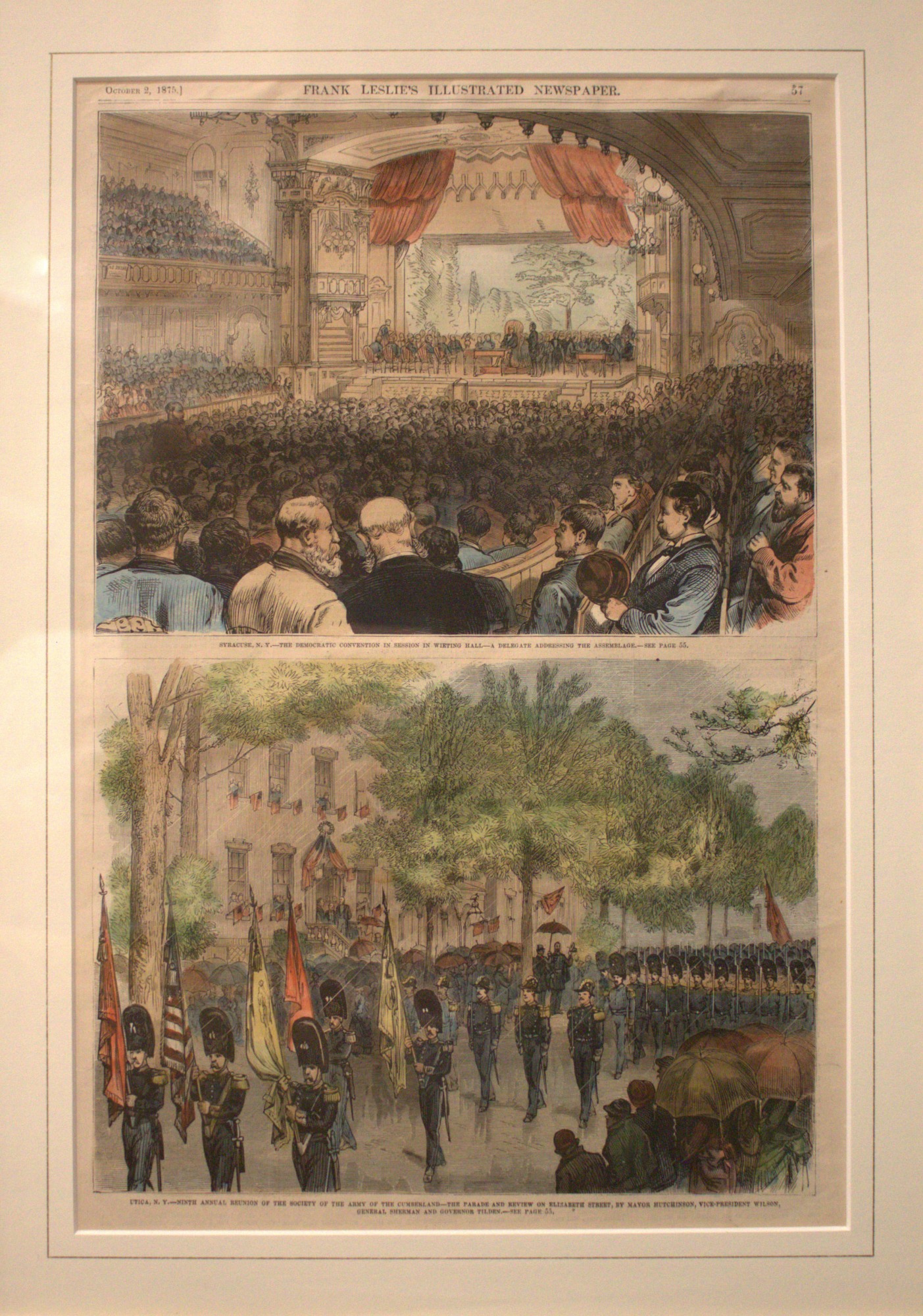 Issue of Frank Leslie's Illustrated News depicting a scene from the Democratic Convention in Syracuse, New York and the Utica Citizens' Corps marching in downtown Utica, New York.