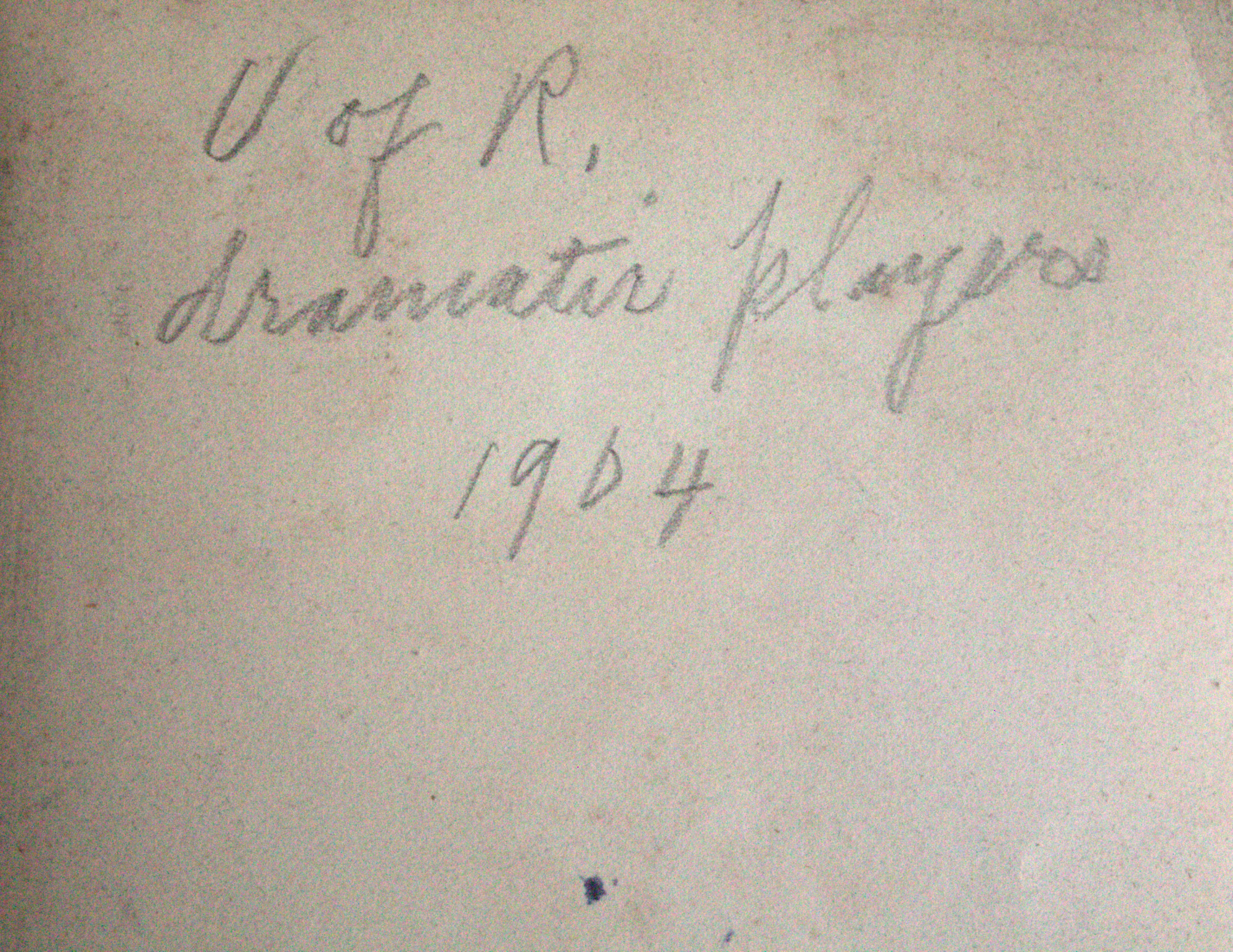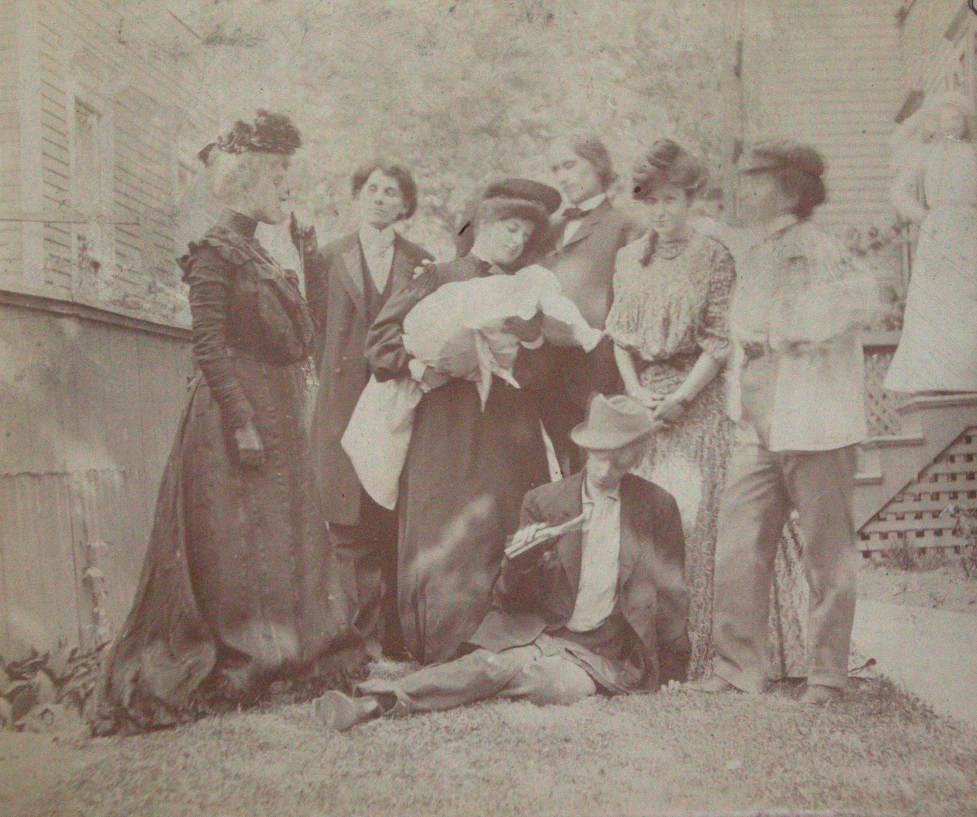 Depicts young women dressed in men's clothing as part of the drama club at the University of Rochester.