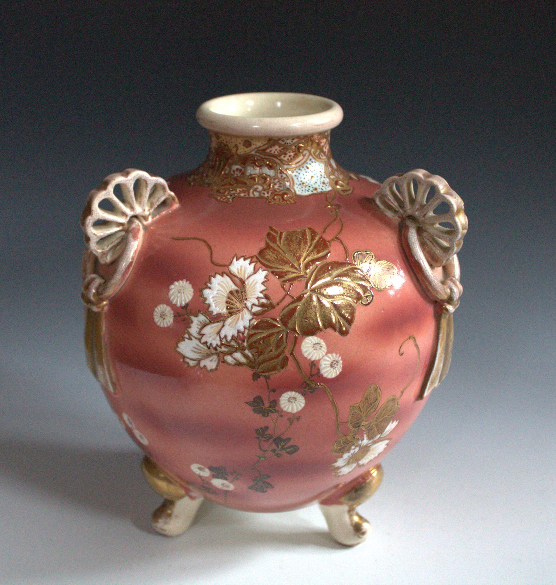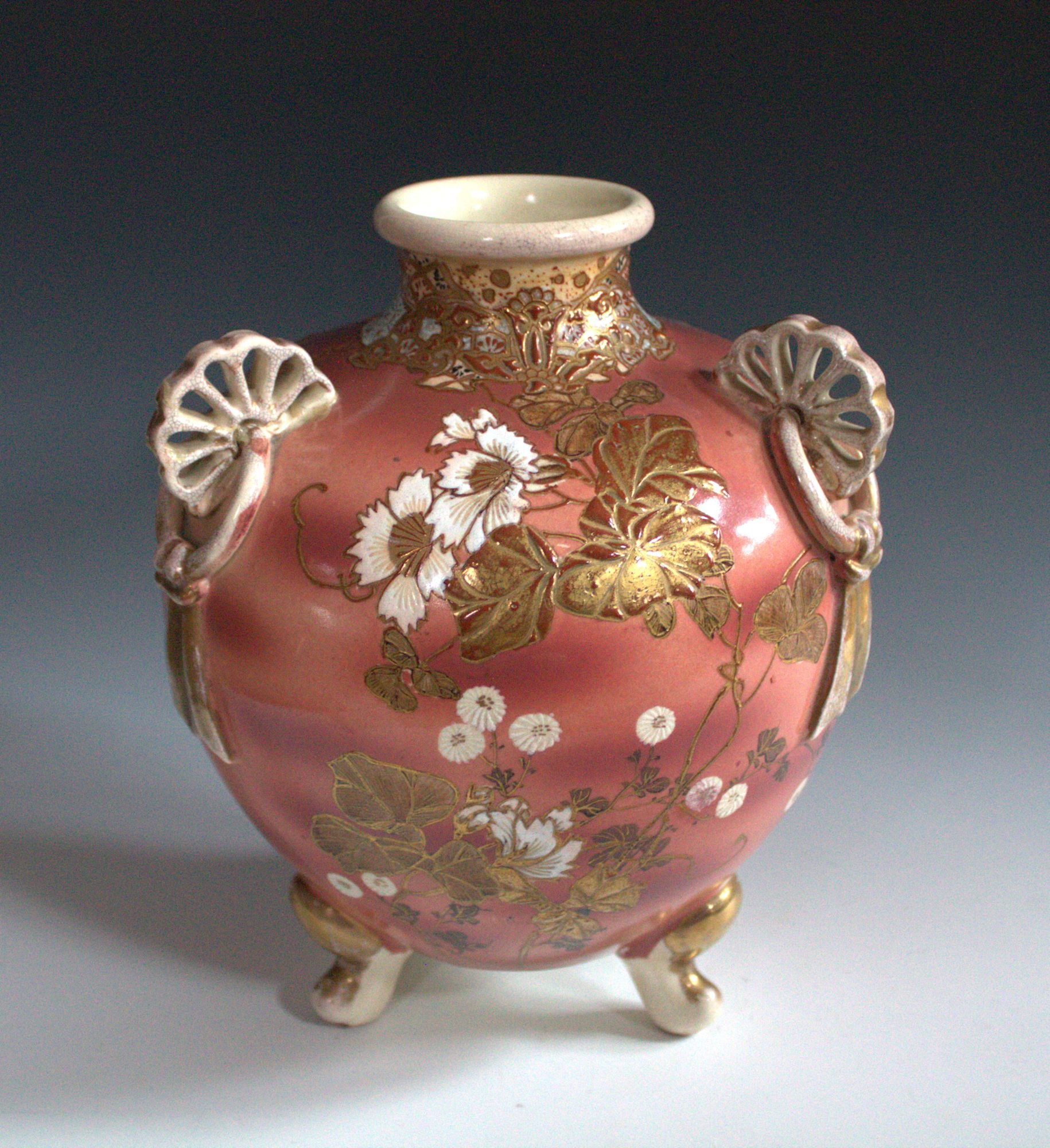 Late Meiji-early Taisho era Satsuma three-footed vase.