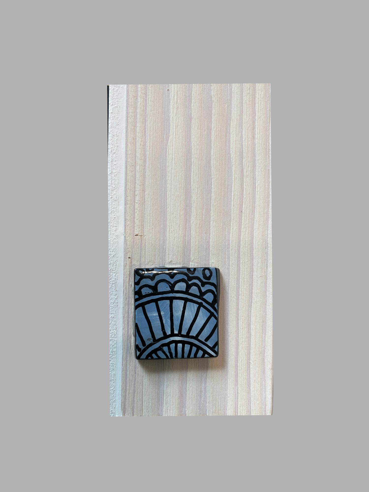This block is part of my new Nirvana collection. "Elation" was created by painting with enamels on glass then fired in my kiln. A colorful blue background creates interest, but the star of the show is the intricate surface design in black. On top of this design I layered blue and clear glass pieces and small blue glass dots for texture. I really love the way this one came out. Although the surface designs are time consuming, there is a zen quality to them. It is very relaxing creating the designs. I added a painted glass design (tattoo) on the side of the block which mimics the front and adds interest.
