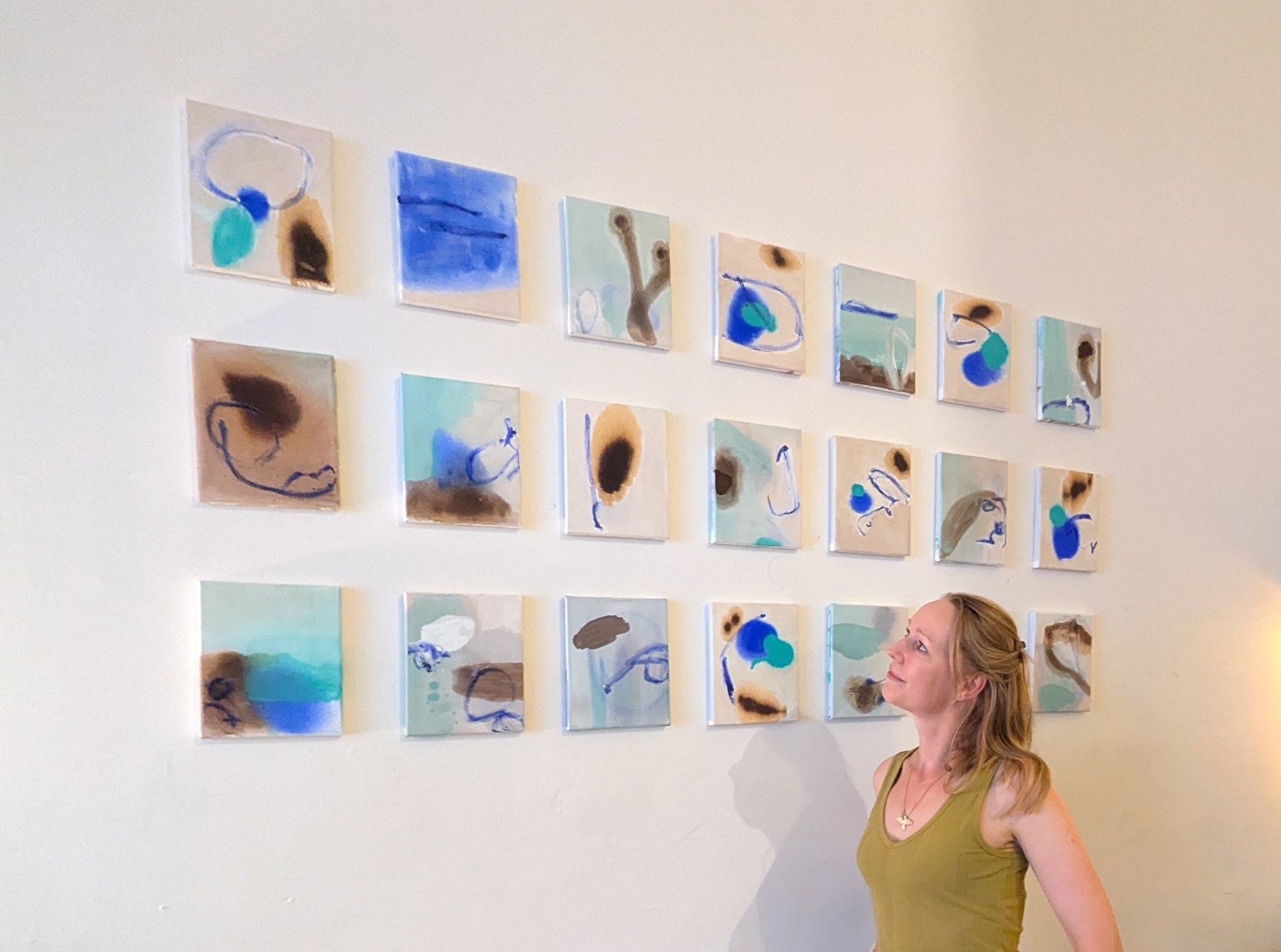 This piece is part of the 'The scent of Greek summer' collection comprising of 21 paintings depicting the rich and sensual experience of summer time in Greece. I spent my time between Greece and the UK - painting and living in these two different countries has been an absolute joy. The light is different, the scents and flavours are different, life is different. I tried to depict this unique Greek summer experience through the use of colour and abstract composition.