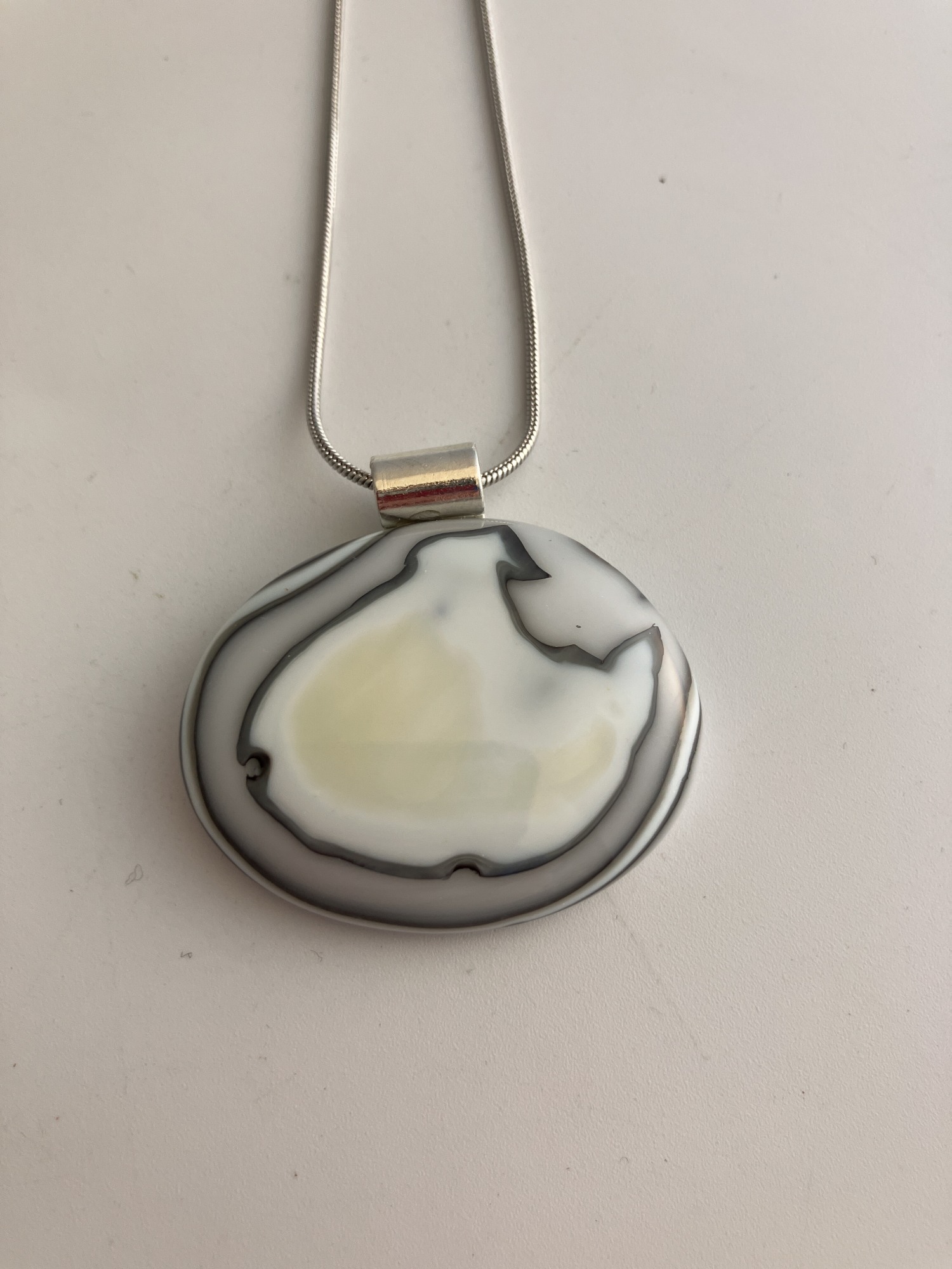 French vanilla fish shaped glass is caught in an eddy of dense white glass.