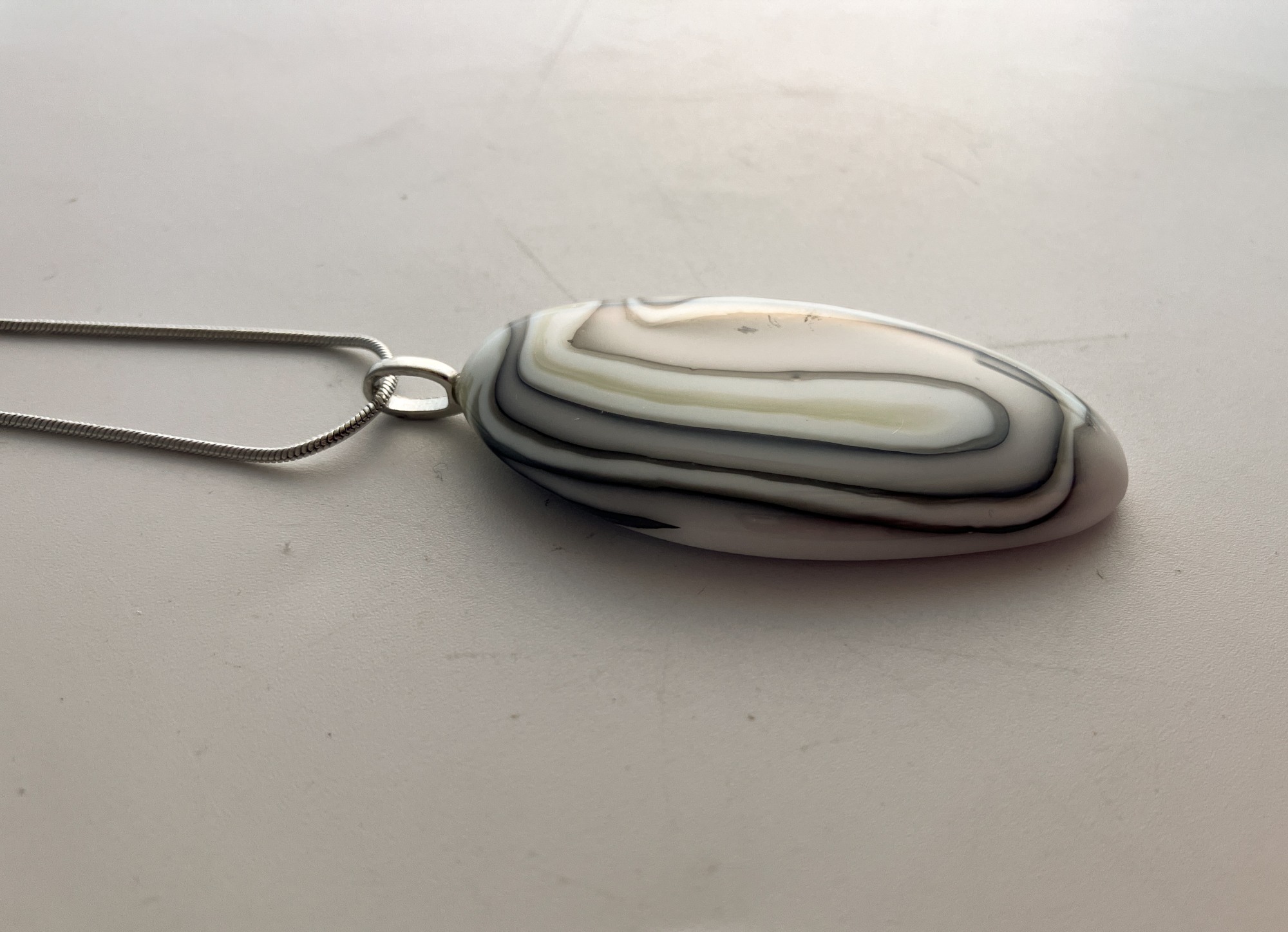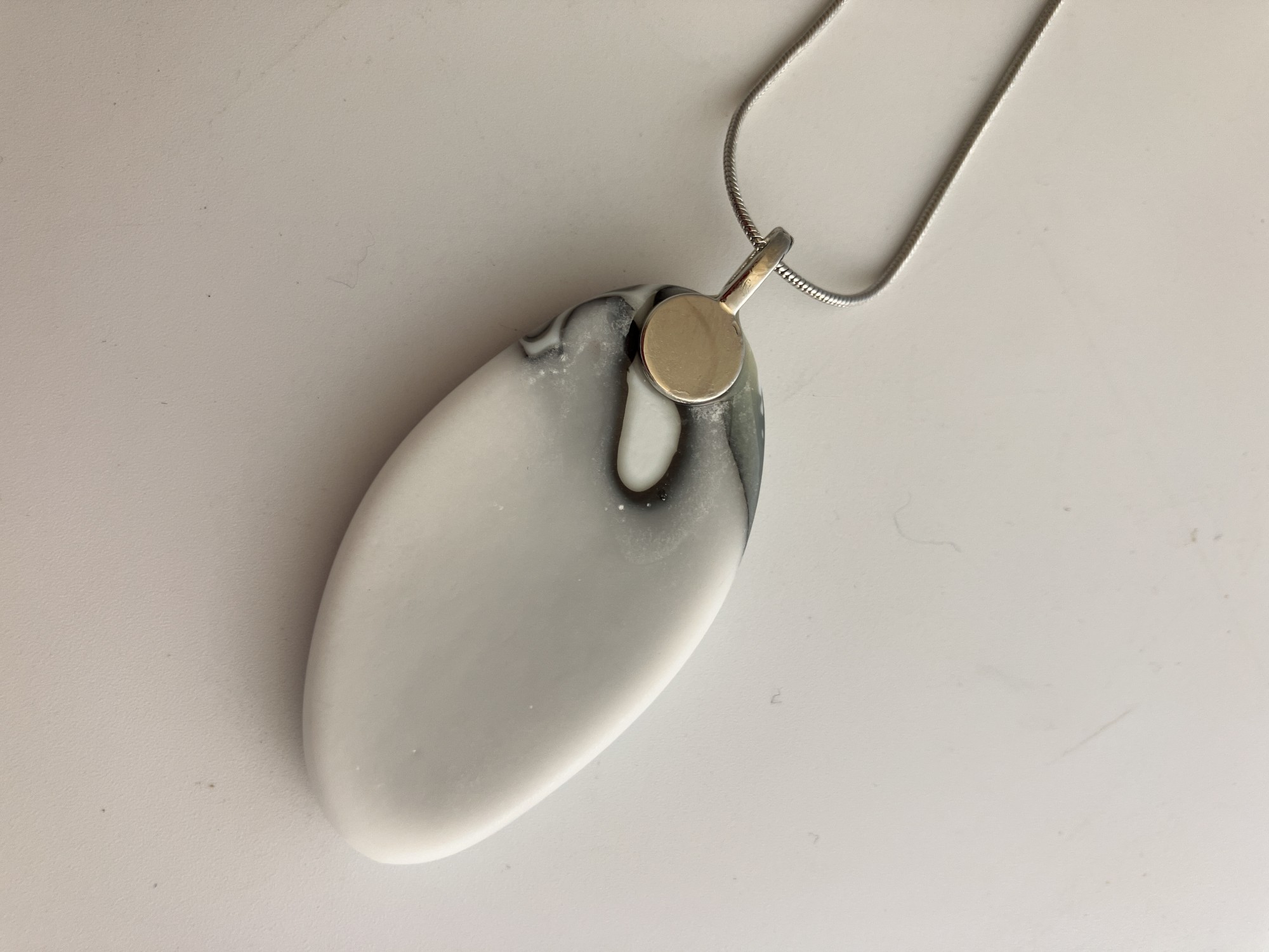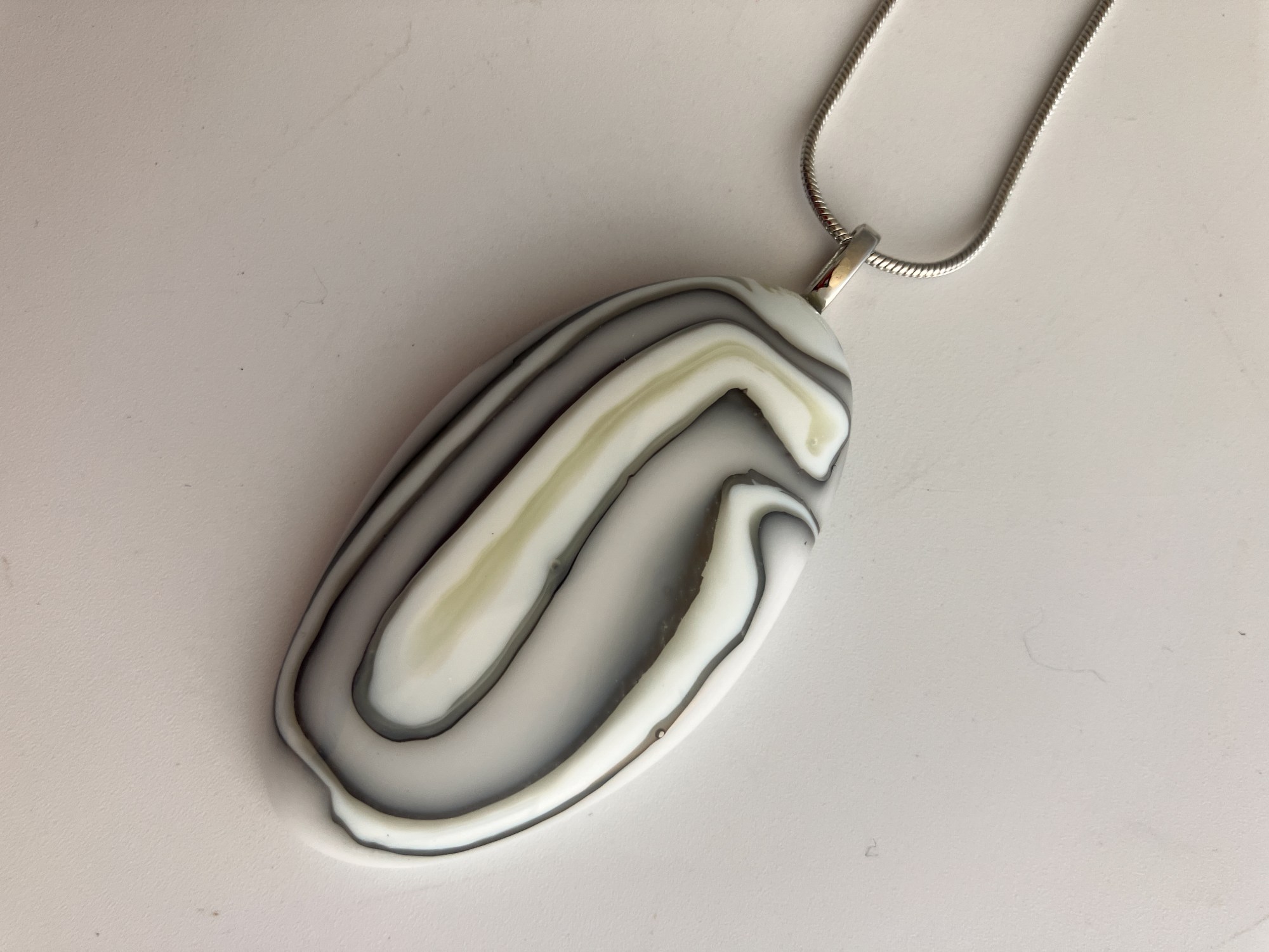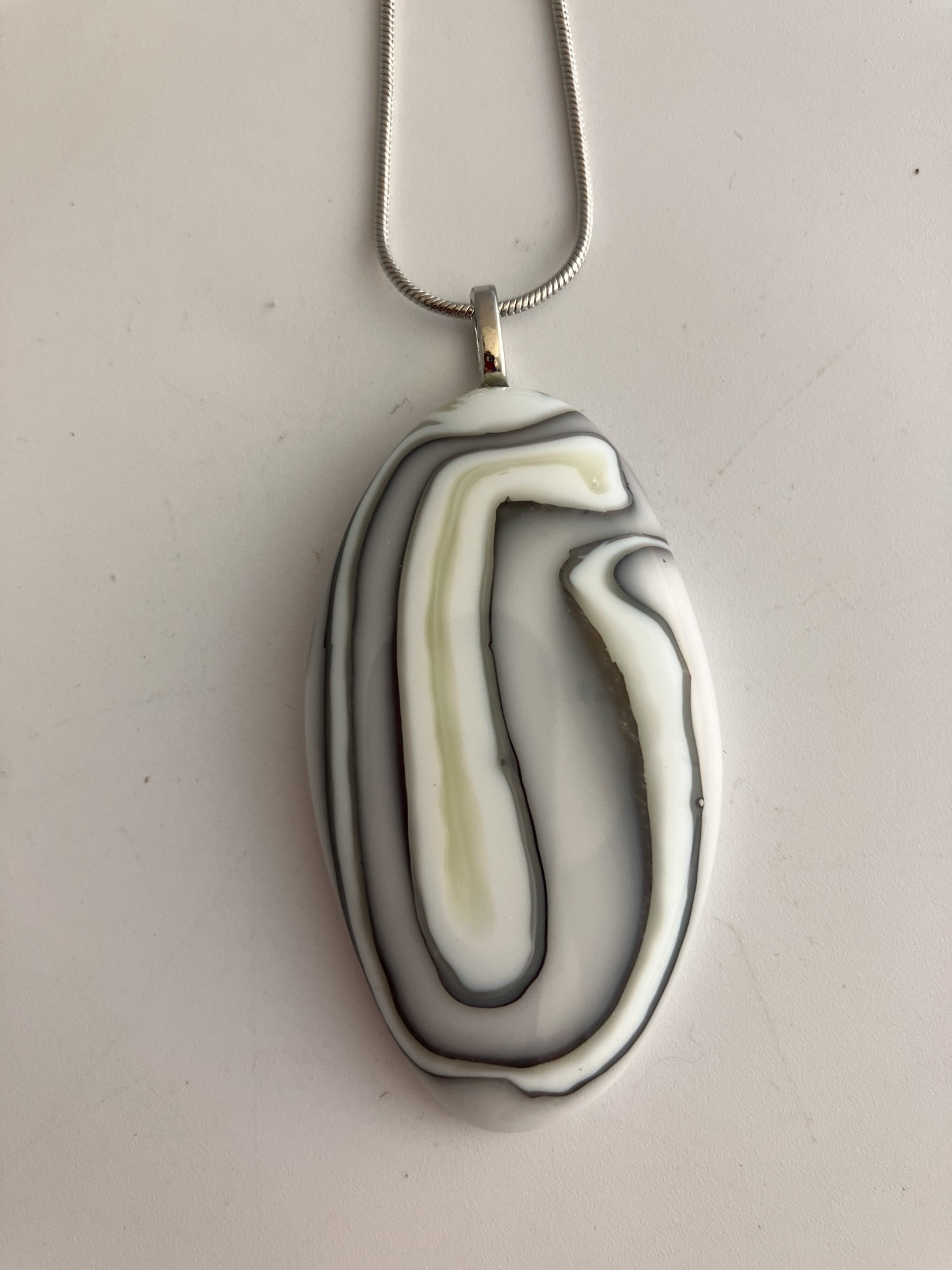 Maze-like , the organic lines display the reactive nature of dense white and french vanilla glass in this elongated pendant.